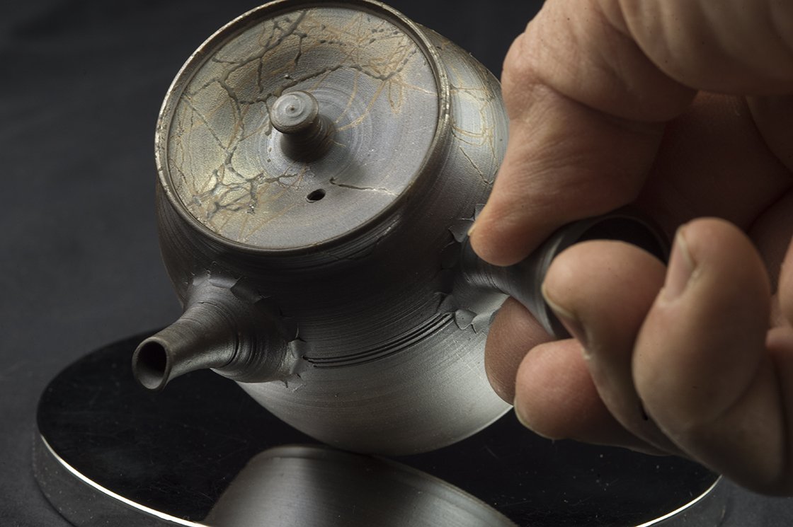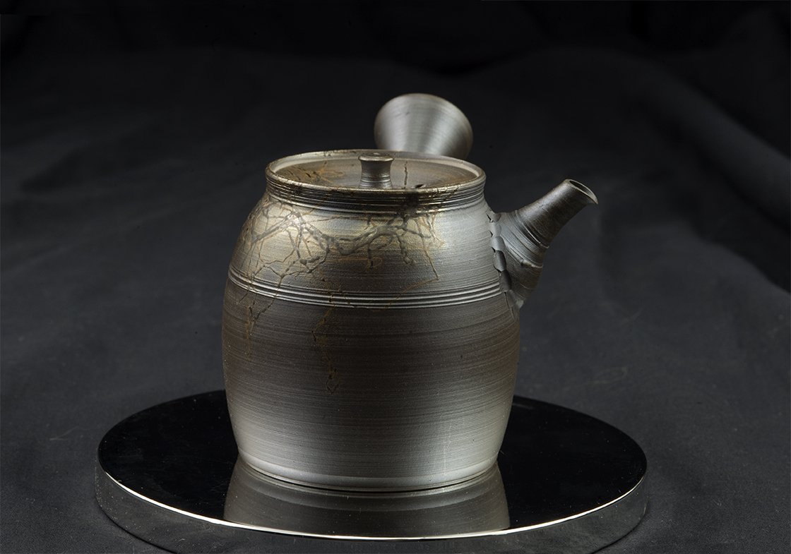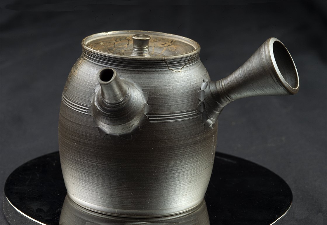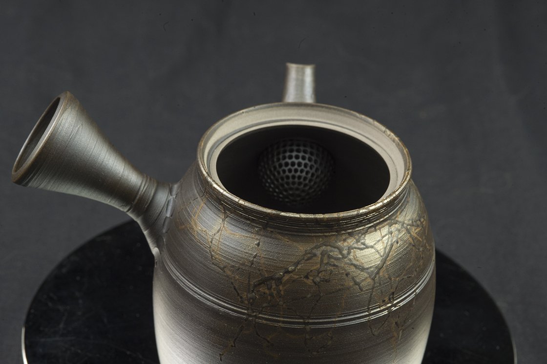Teljesen kézzel készített Tokoname teáskanna Yutaro Yamada műhelyéből, aki fiatal kora ellenére már sikerrel hívta fel magára a figyelmet és keresett a gyűjtők között is. Rendesen 4 – 5 különféle agyagot használ, itt fekete agyagon, tengeri alga sóival égetett mintázatú kannát láthatunk. A kanna 10,9 cm széles, 9.6 cm magas a fedél átmérője 3.2 cm, a test átmérője 7,1 cm. Yutaro Yamada Tokonamében született és az Aichi Prefektúra Tokoname Főiskola művészeti szakán és a Daido Egyetem Mérnöki karán szerzett diplomát, majd a Tokoname Tonomori Kerámiaművészeti Intézetben fejezte be tanulmányait.