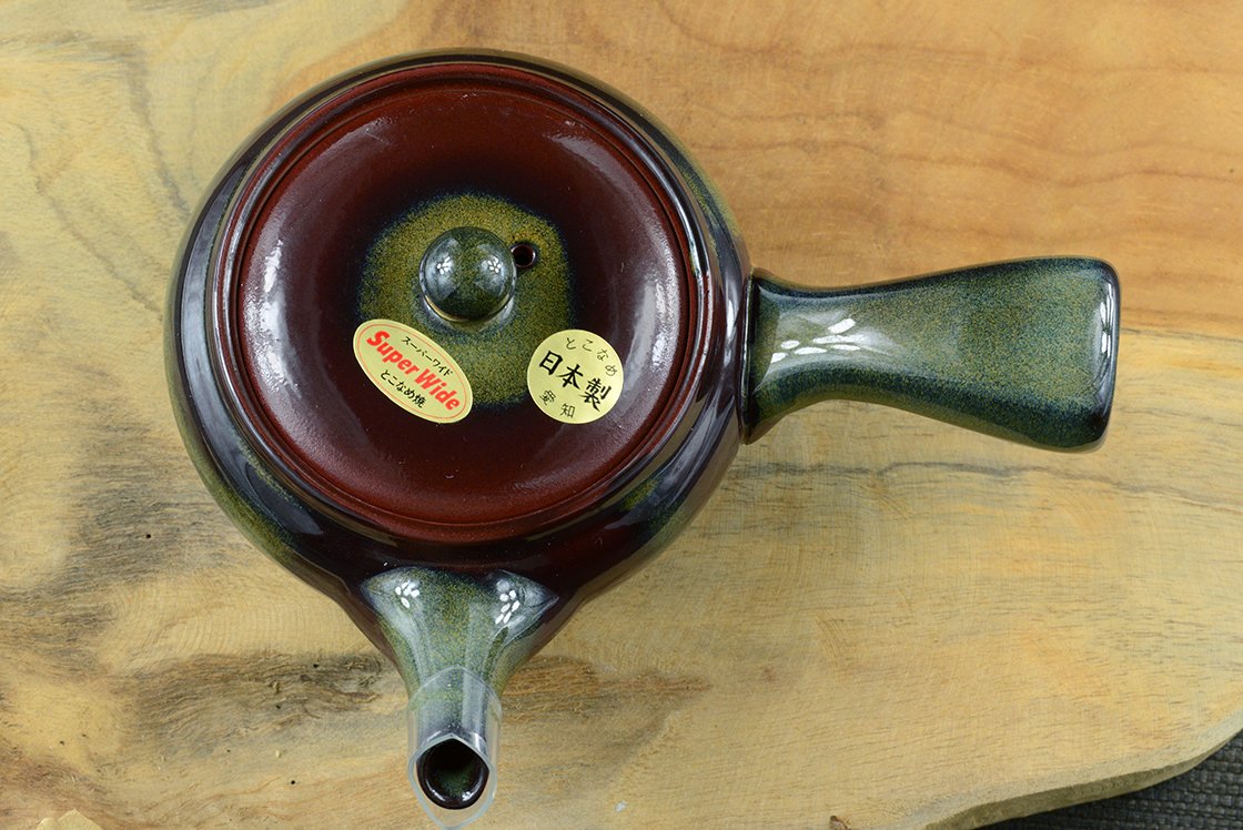 Mázas tokoname teáskanna. Űrtartalma 280 ml, 15 cm széles 8 cm magas,