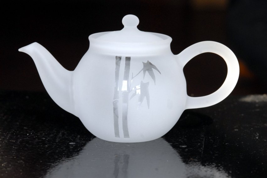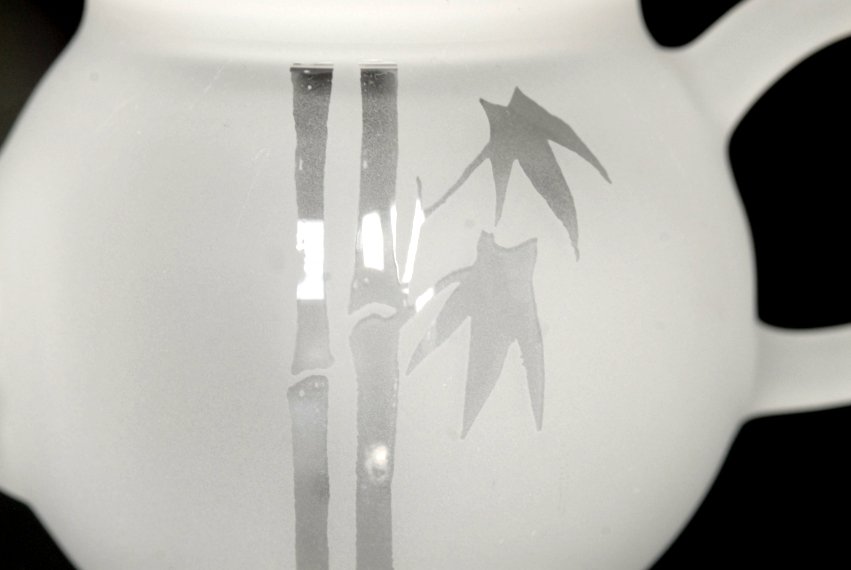 Körülbelül 250 ml űrtartalmú ragyogó kivitelezésű, szertartásban (is) használatos üveg teáskanna japán teákhoz. A sencha szertartásainak igazi ünnepi pillanatai közé tartozik, amikor ilyen üveg eszközök tűnnek fel a színen.