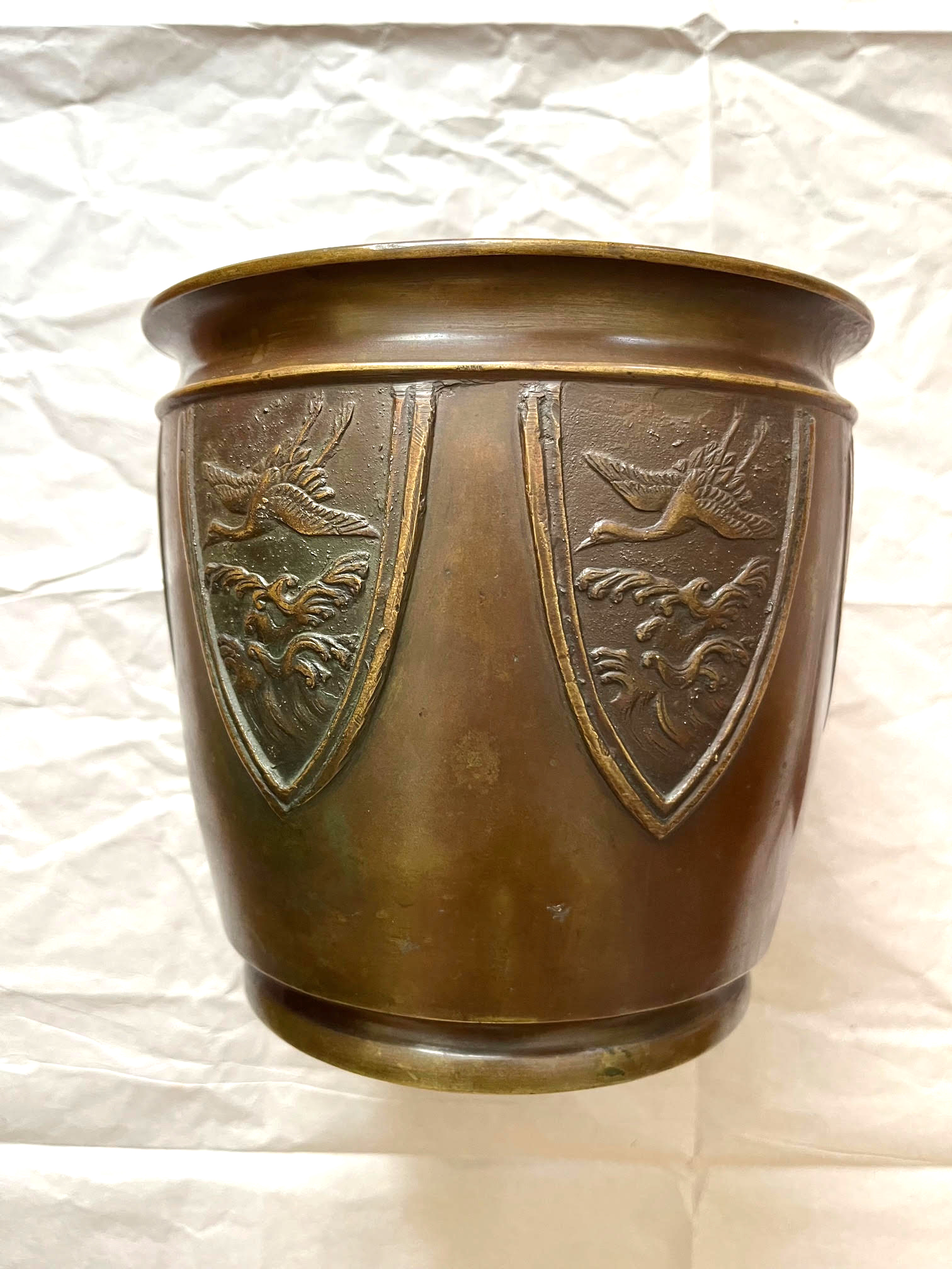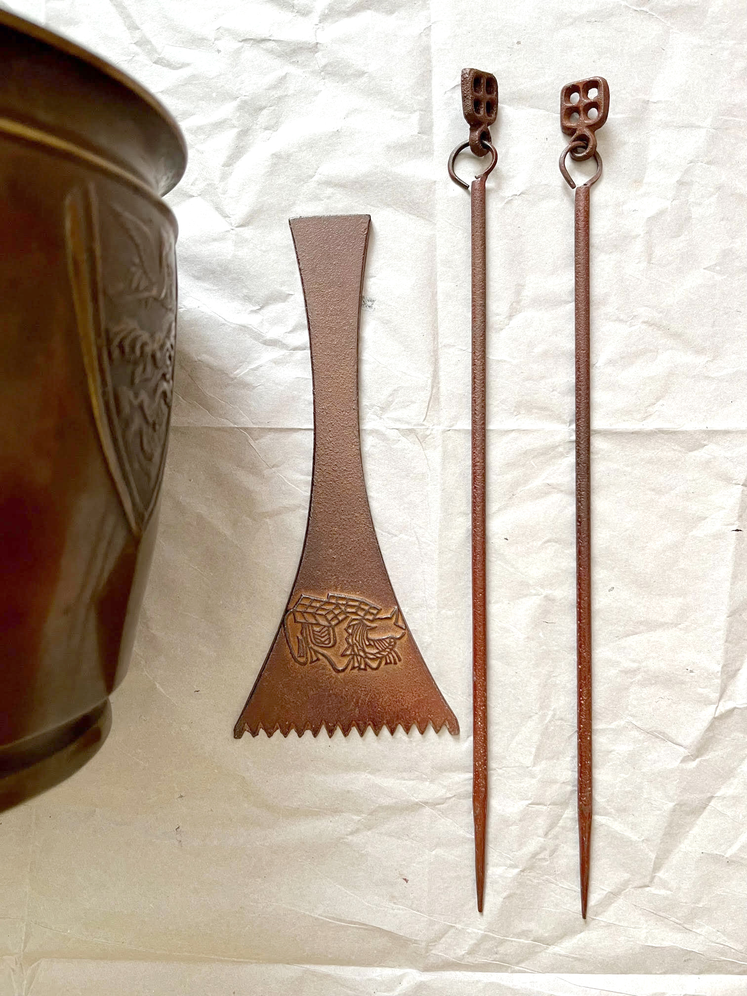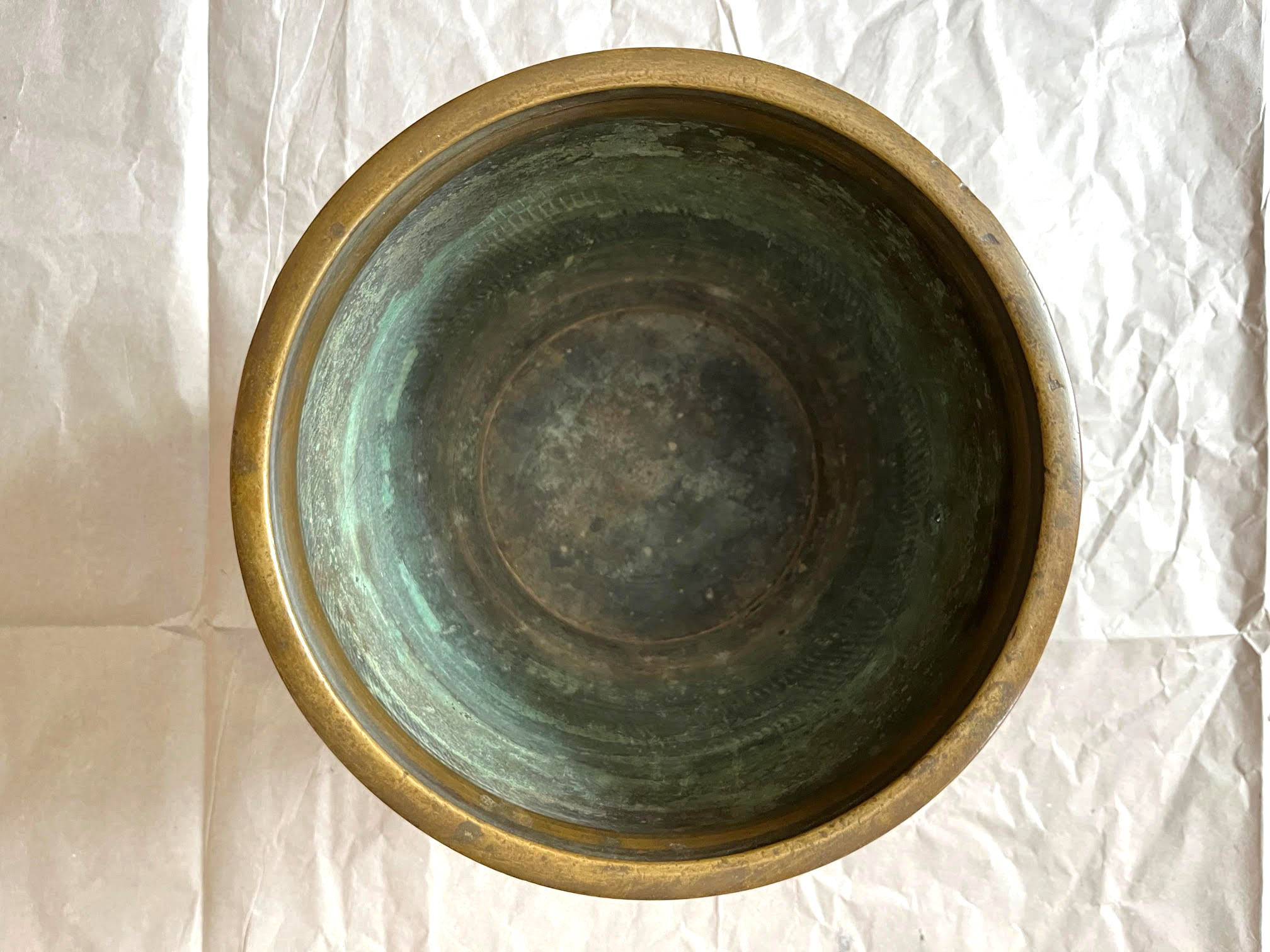 16 cm magas , a felső karimán 17,5 cm átmérőjű bronz hibachi.