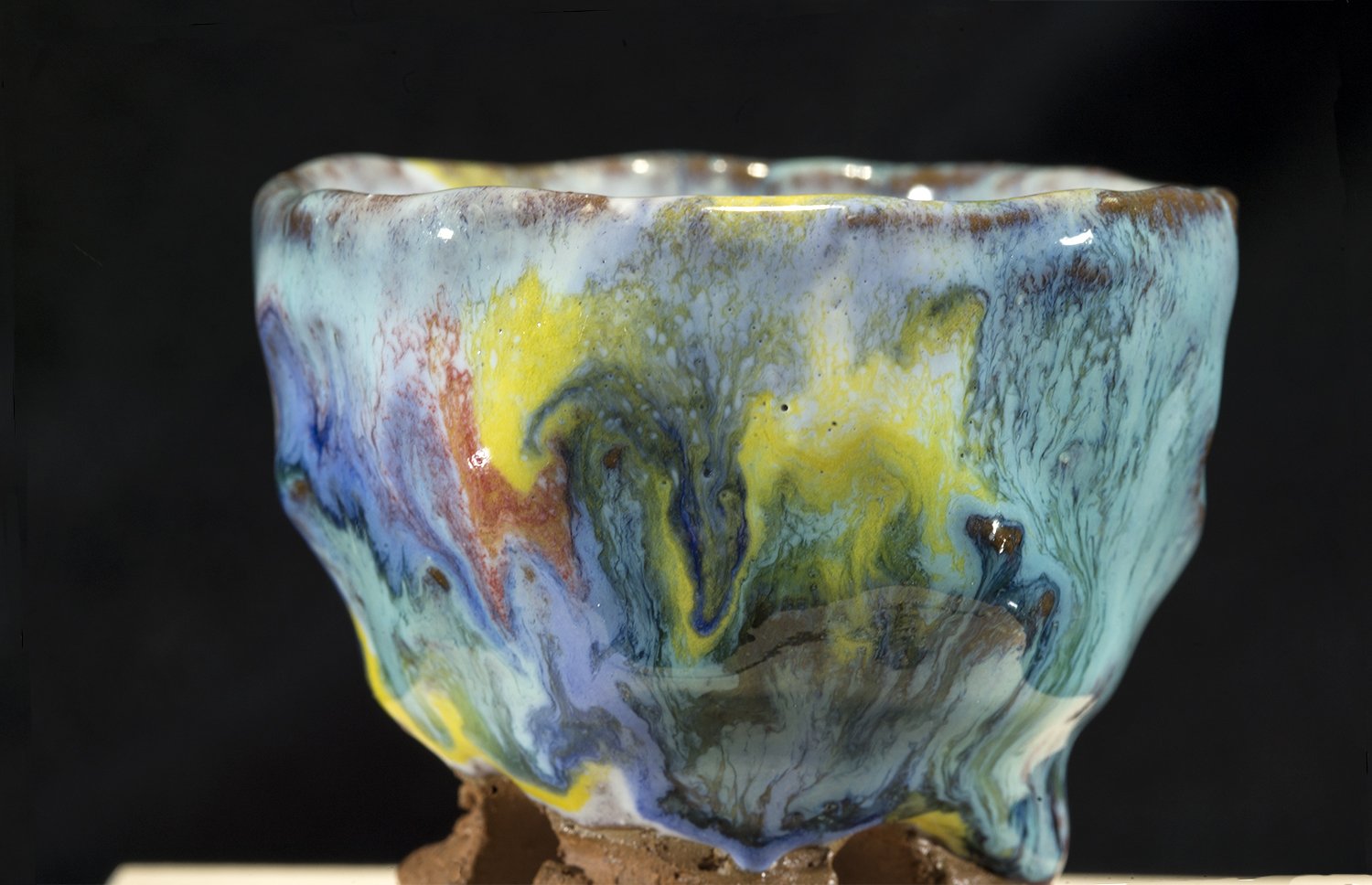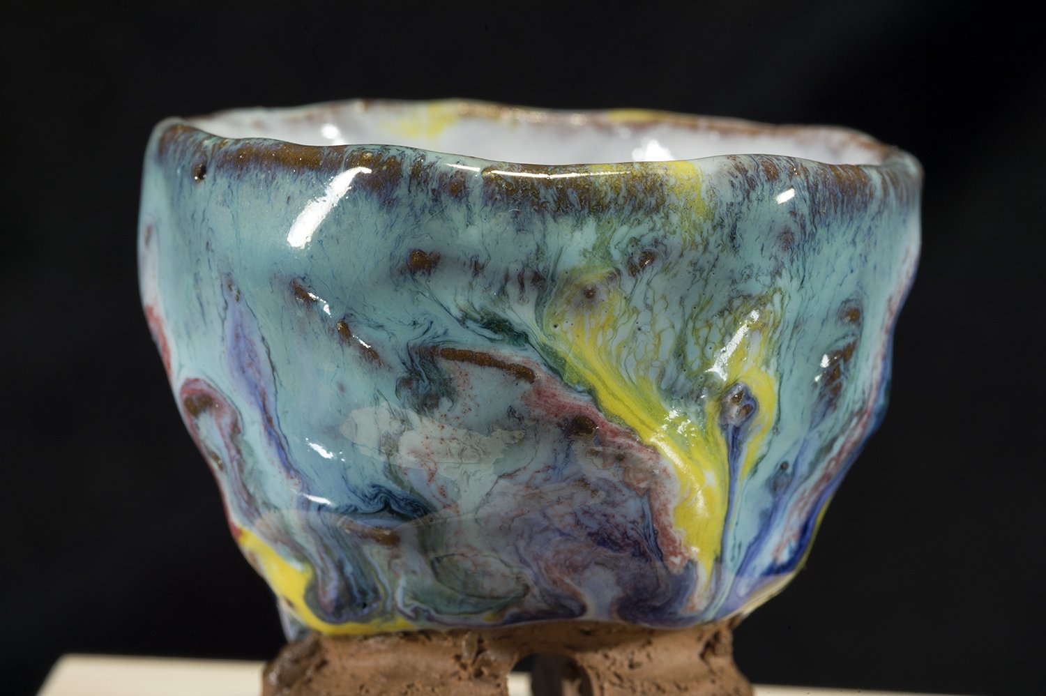 7,2 cm átmérőjű 6,2 cm magasságú Hagi teás/szakés csésze Yamane Seigan műhelyéből.