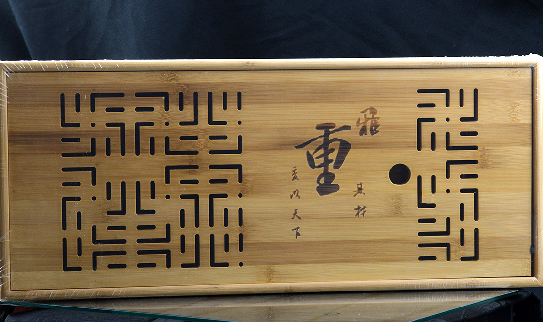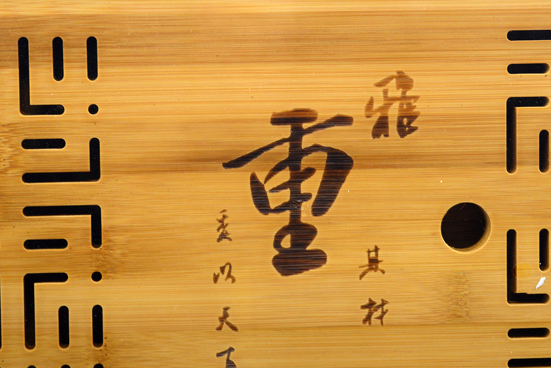 Pink chapan teatálca préselt bambuszból. Nem reped, nem használódik, csak patinát kap, azt meg le lehet mosni. A minták mentén különféle társasjátékokat is lehet játszani. Szép darab. Mi lehet az a jel a közepén???