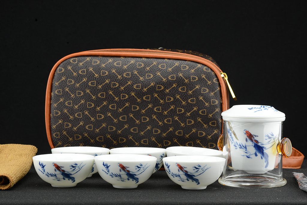 Lujiz Fuitton luxus utazó teáskészlet. Az eredeti európai termékre megtévesztésig hasonlatos dizájn, nem lepődnék meg, ha kiderülne, hogy a gyár másik végében bérmunkában igazi Vuitton táskákat szabnak, ez azonban a használatot semmilyen mértékben sem zavarja. Üveg  gaiwan benn porcelán szűrőház, aminek az alja fém szűrő. A hat darab csésze szintén finom porcelán, kb 60 ml űrtartalmúak.   Sokkal finomabb anyag, mint a már ismert utazó teáskészletek, a csészék is nagyobbak. Nem hinném, hogy kézzel festett.  Ettől függetlenül a legjobb utazó készlet. Lujiz Fuitton luxus utazó teáskészlet Lujiz Fuitton luxus utazó teáskészlet Lujiz Fuitton luxus utazó teáskészlet Lujiz Fuitton luxus utazó teáskészlet Lujiz Fuitton luxus utazó teáskészlet Lujiz Fuitton luxus utazó teáskészlet Lujiz Fuitton luxus utazó teáskészlet Lujiz Fuitton luxus utazó teáskészlet Lujiz Fuitton luxus utazó teáskészlet Lujiz Fuitton luxus utazó teáskészlet Lujiz Fuitton luxus utazó teáskészlet