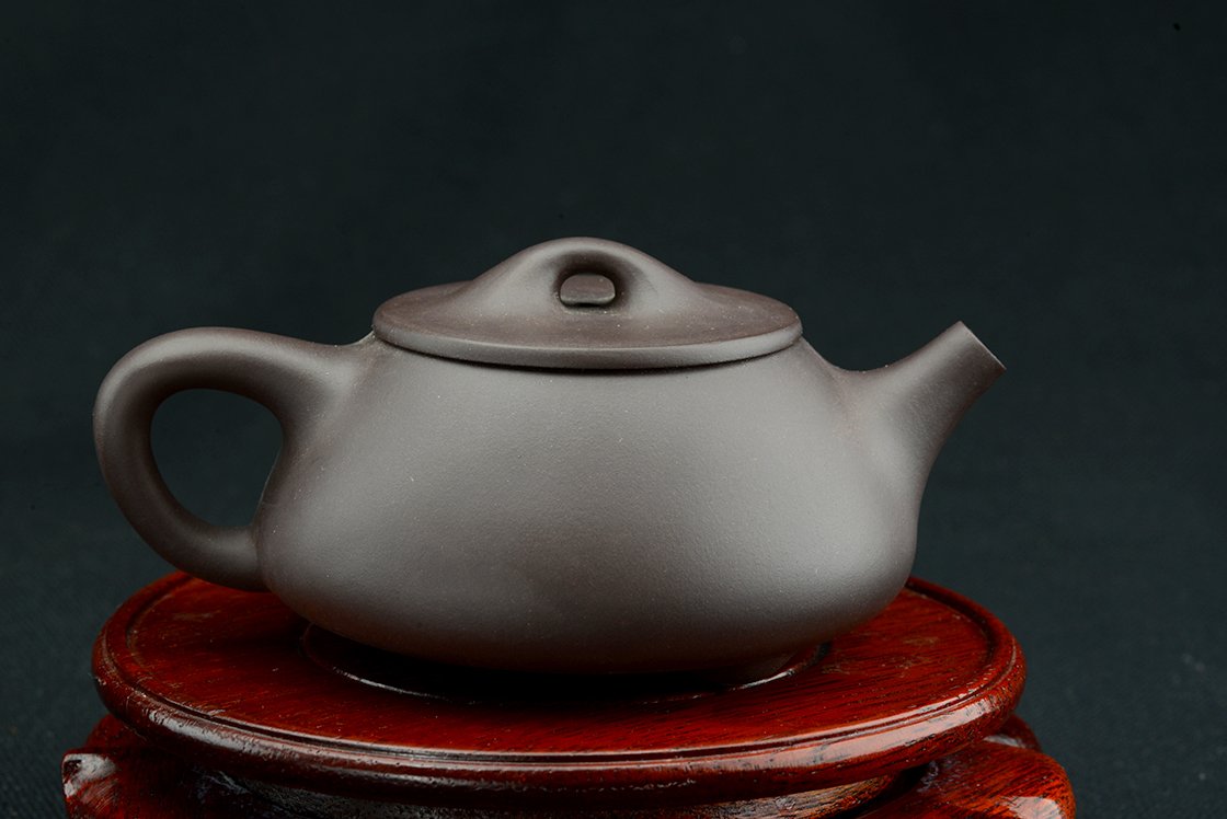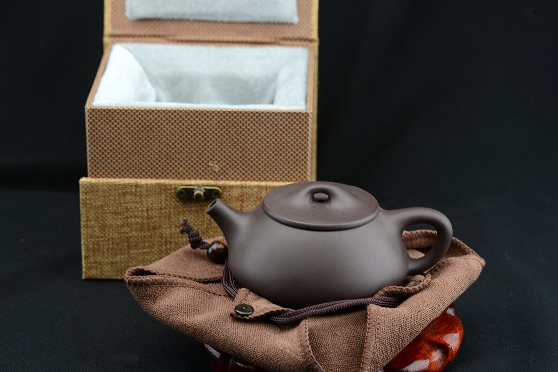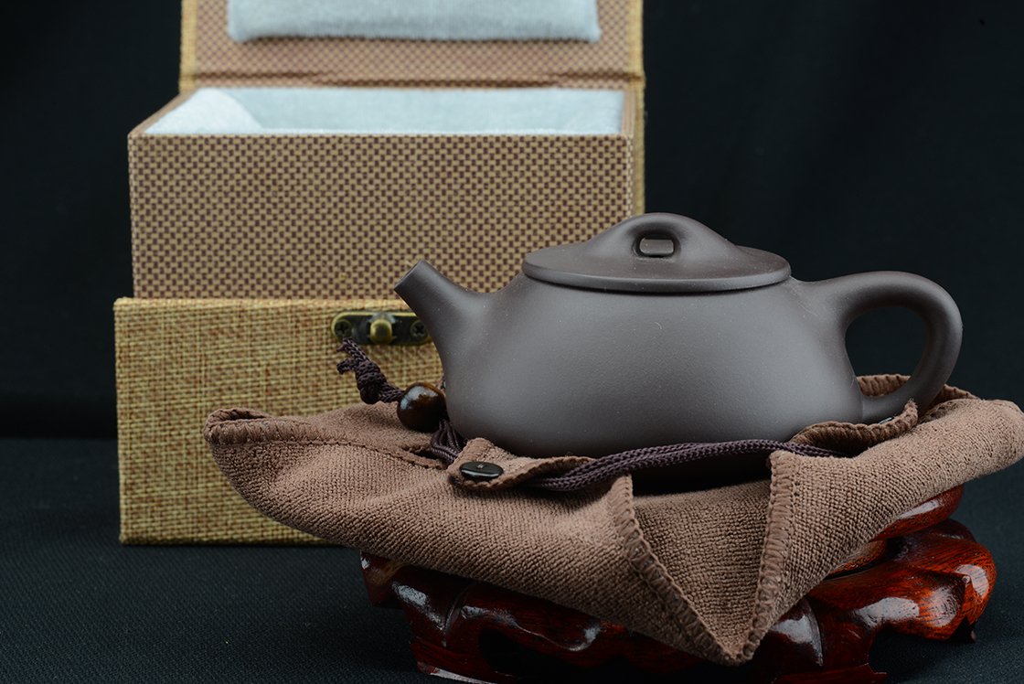 Gu Jingzhou(1915-1996), a Yixing egyik legendás nagymestere volt, aki sokat tett a yixing formák megújításáért. Ezt a shi piao formát az ő újításai nyomán róla nevezték el. Látszólag olyan, mint egy klasszikus shi piao, de sok kis részletben változott, főleg a fedél fogásán érzékelhető. Gu Jingzhou egyik shi piao kannája újabban 2 millió dollárért kel el egy árverésen. A kannát bélelt díszdobozban törlőkendővel, alátéttel (nem a dísz fa alátétről van szó!!) és igazolással szállítjuk.