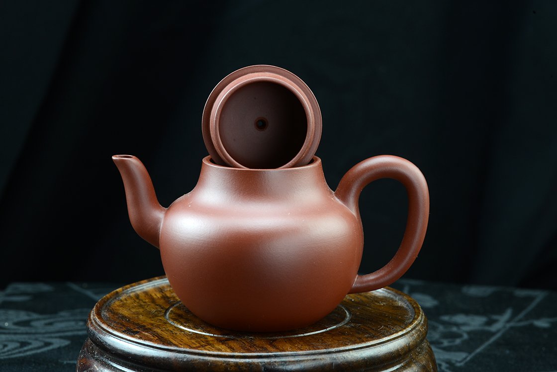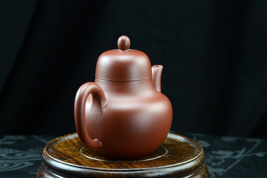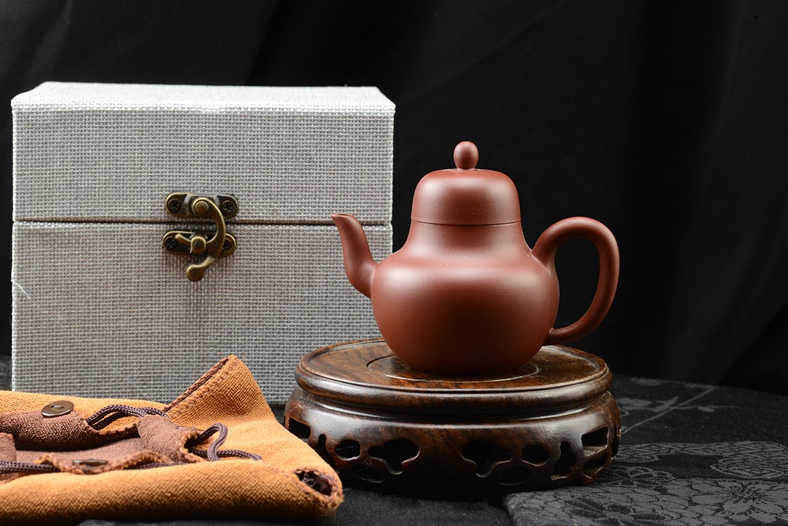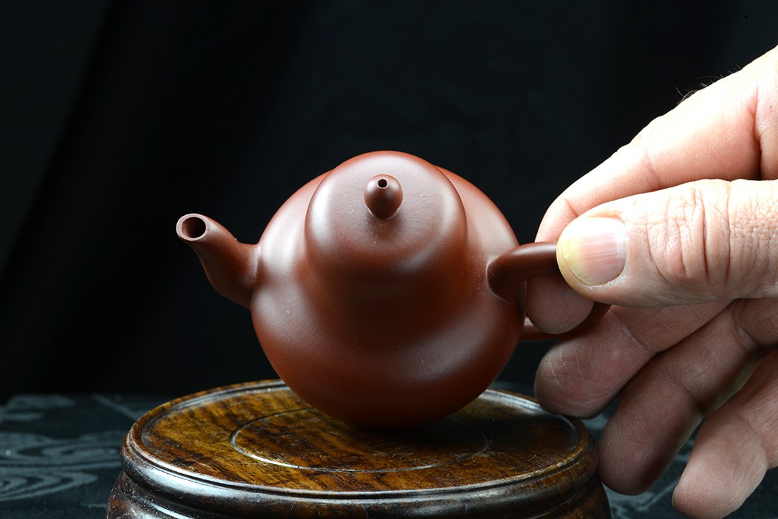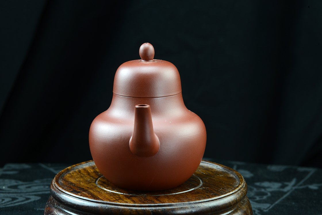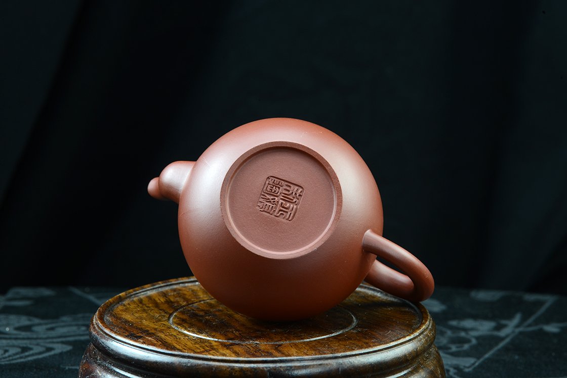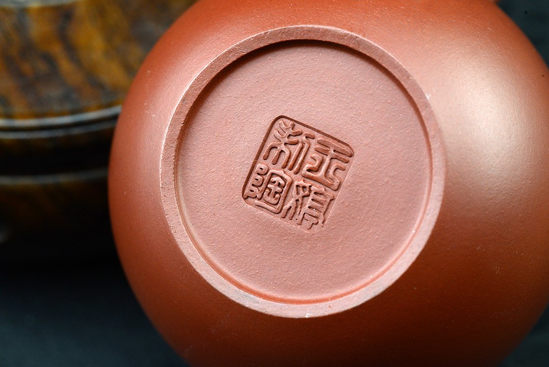 Lu Siting 陆思亭 a yixing legnagyobbnak tartott 300 évvel ezelőtt élt mesterének volt, az ő találmánya a róla elnevezett teáskanna forma, ami egy (tiszta vízhez való) lopótökön alapul, de finom kecses vonalakkal változik át teáskannává. Ez itt kevert bíbor Da Hong Pao yixing agyag, teakészítésre, vagy gyűjtőknek való. A teáskanna Wang Ting fiatal keramikus művészhölgy műhelyéből származik.