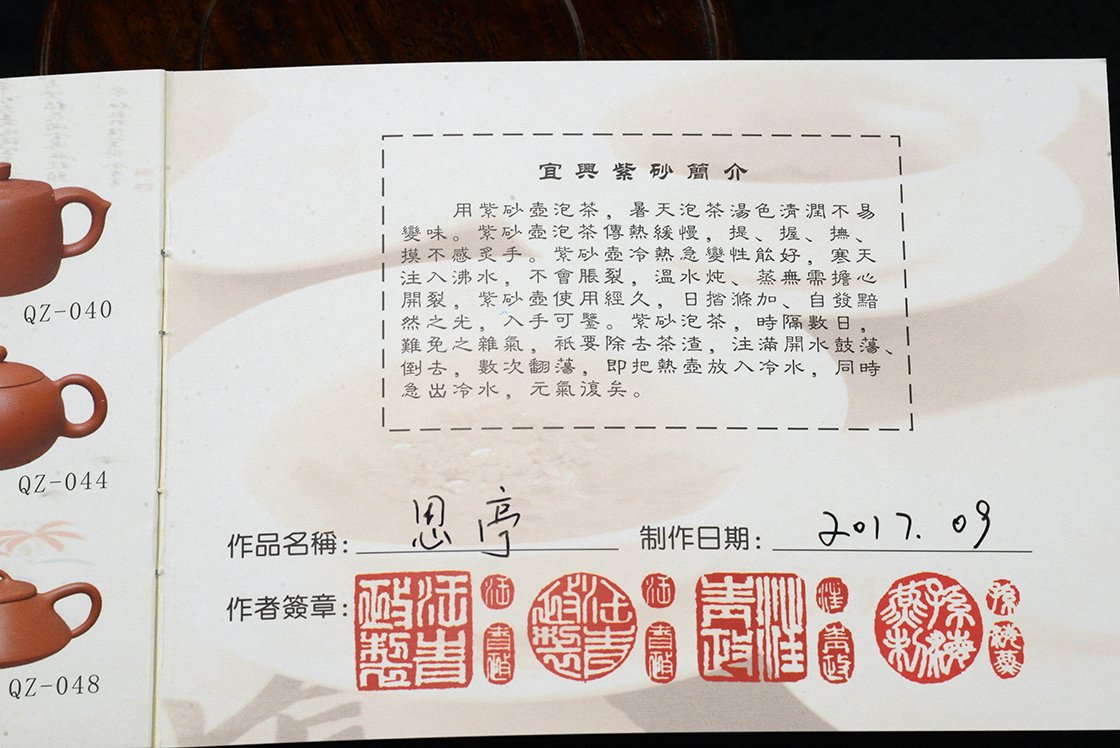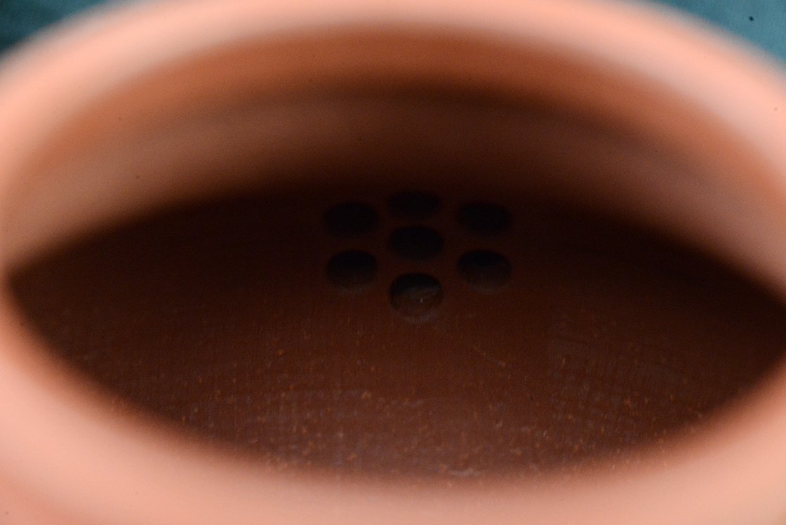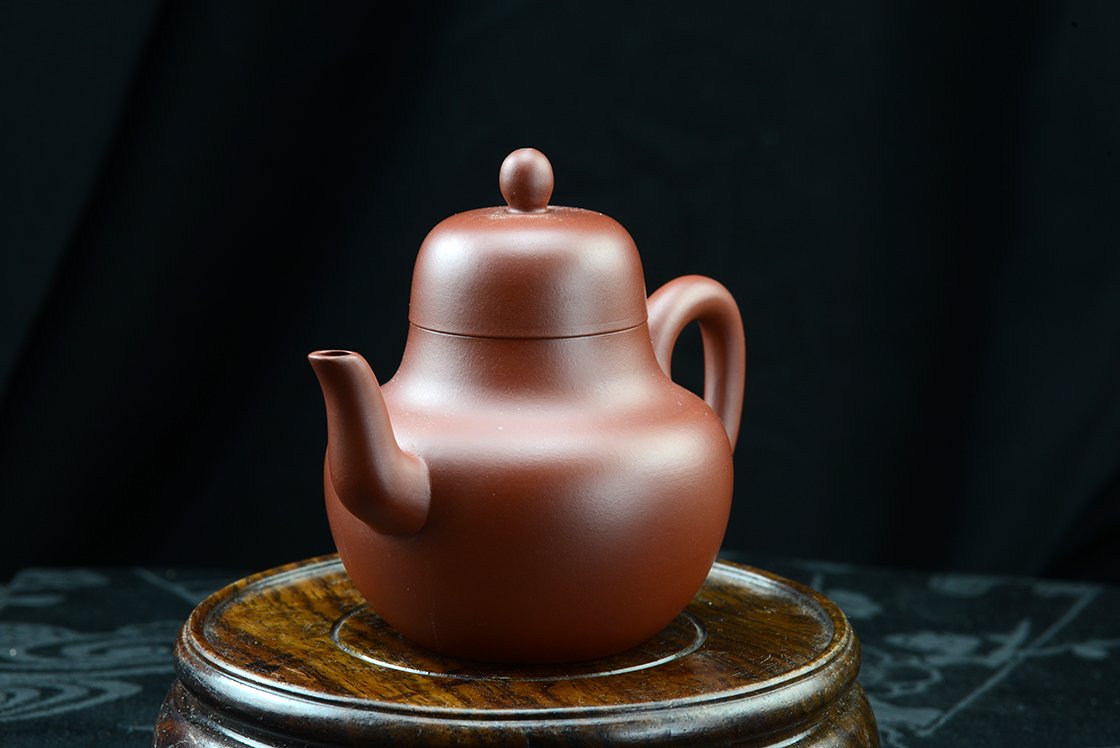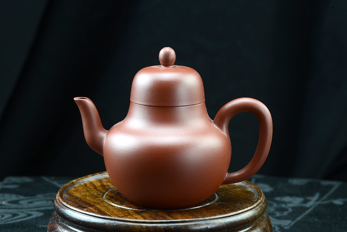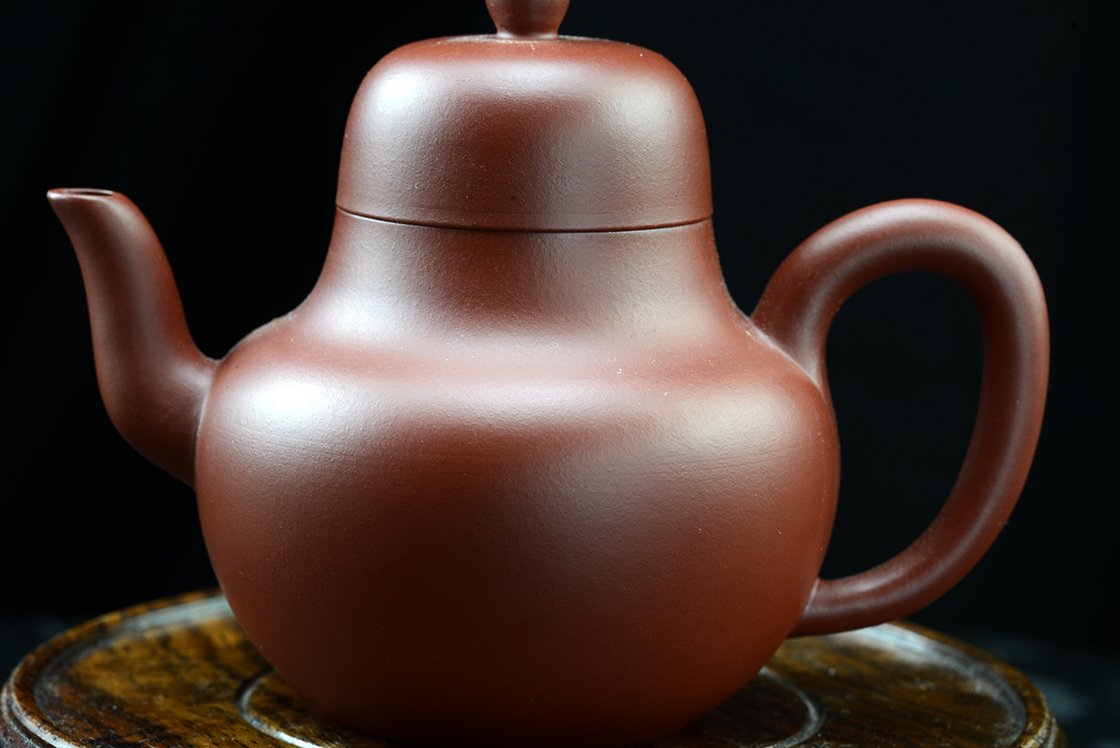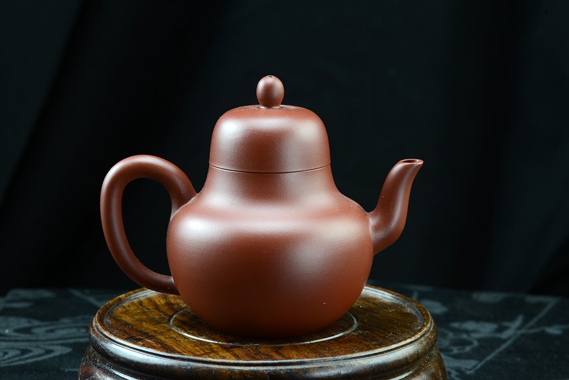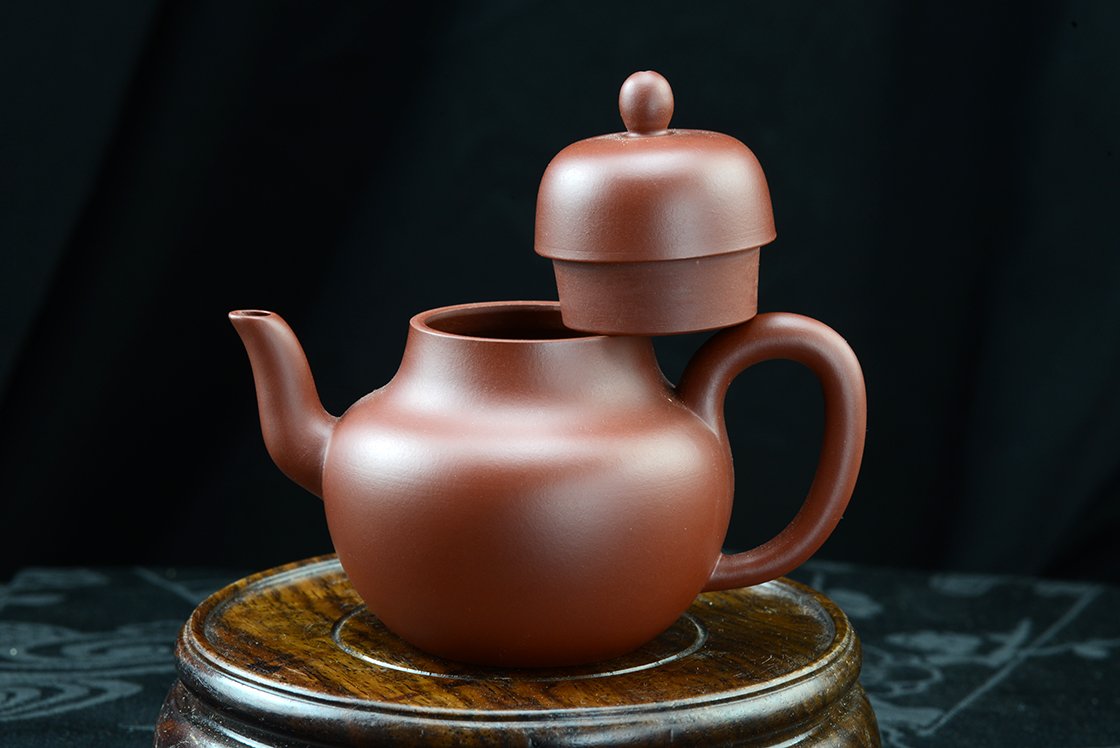 Lu Siting 陆思亭 a yixing legnagyobbnak tartott 300 évvel ezelőtt élt mesterének volt, az ő találmánya a róla elnevezett teáskanna forma, ami egy (tiszta vízhez való) lopótökön alapul, de finom kecses vonalakkal változik át teáskannává. Ez itt kevert bíbor Da Hong Pao yixing agyag, teakészítésre, vagy gyűjtőknek való. A teáskanna Wang Ting fiatal keramikus művészhölgy műhelyéből származik.