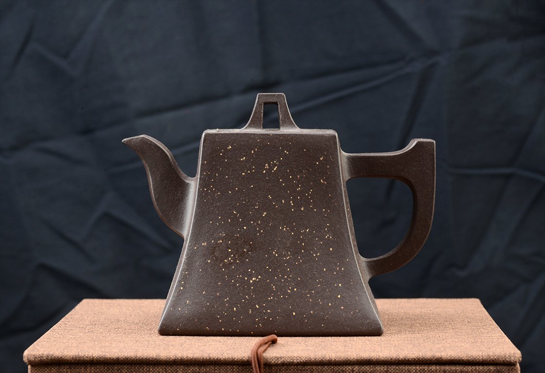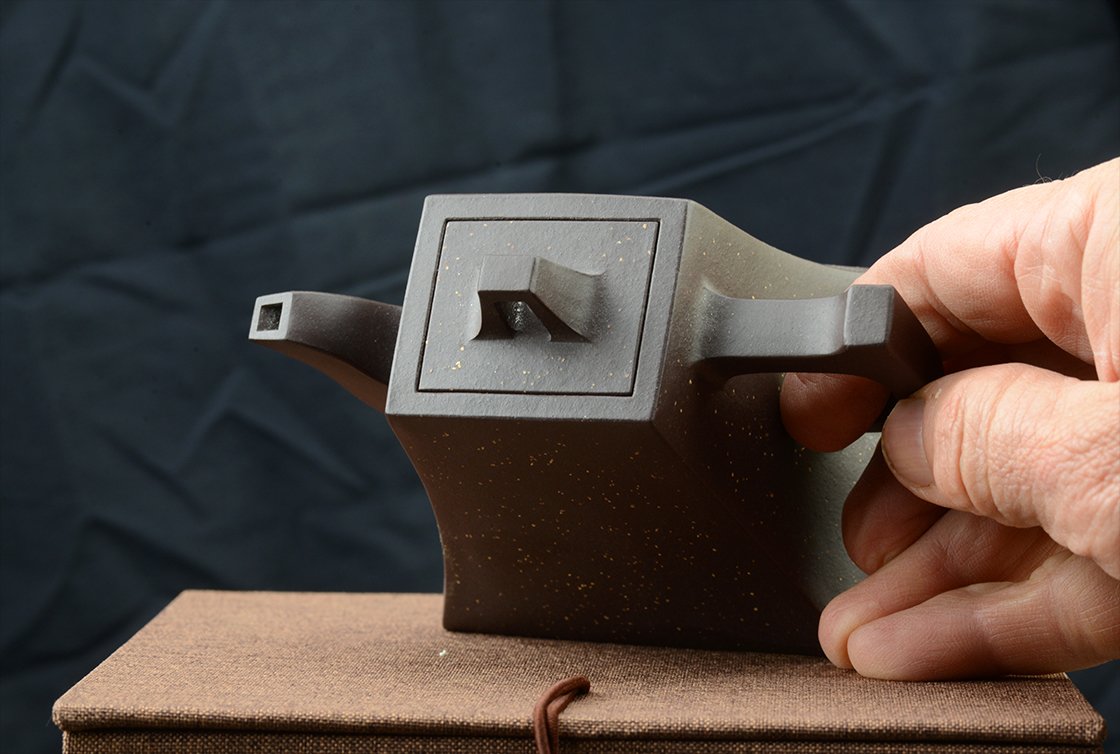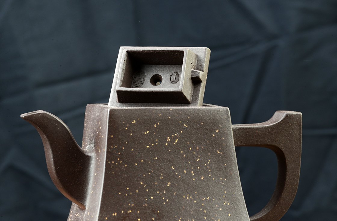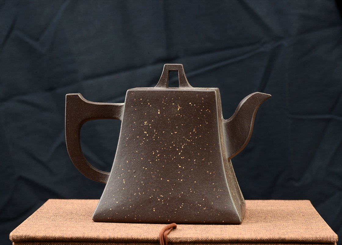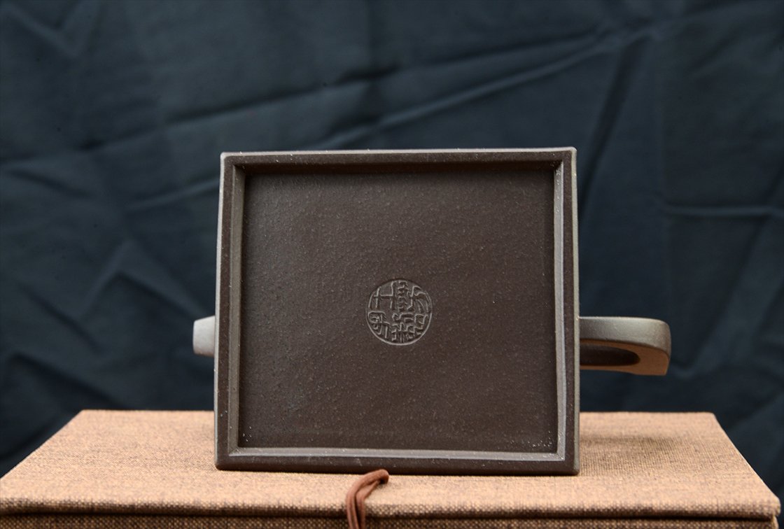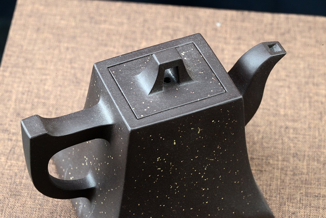 Belső pecséttel is igazolt magas minőségű zi ni csillagos ég sifang yixing teáskanna. A négyszögletes, de hajlított testű kanna nagyon jól kézreáll.