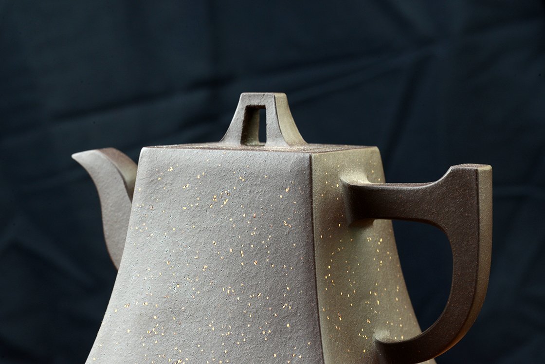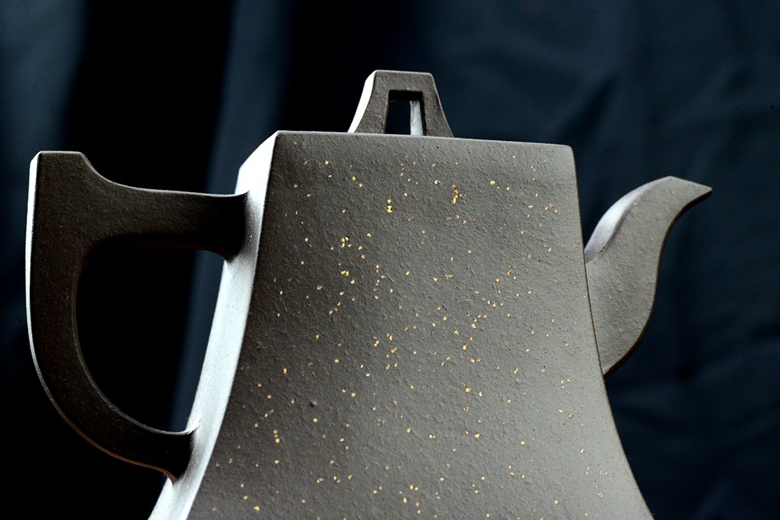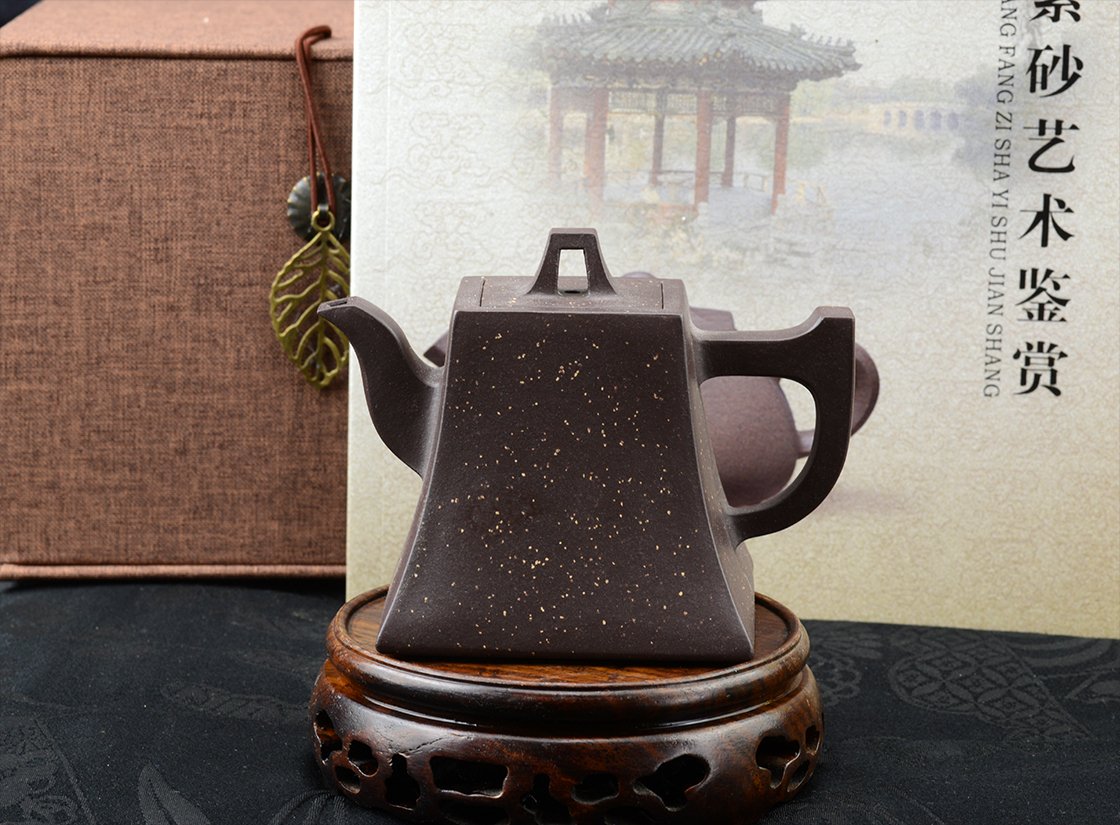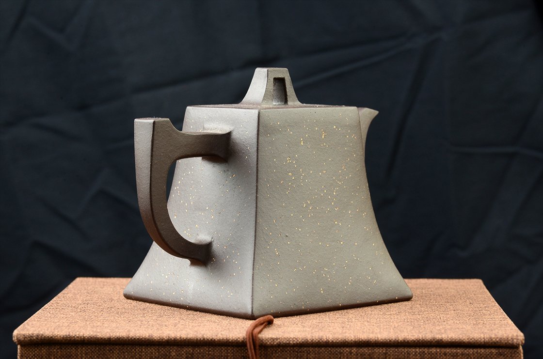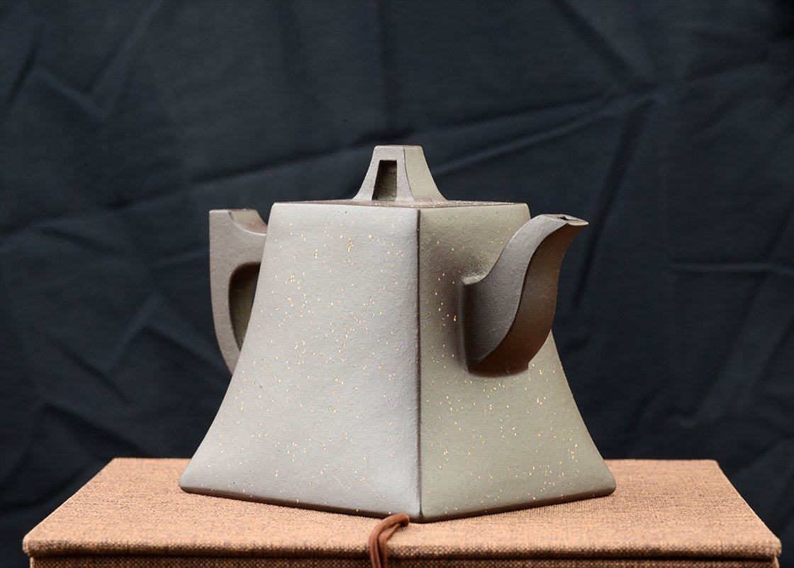 Belső pecséttel is igazolt magas minőségű zi ni csillagos ég sifang yixing teáskanna. A négyszögletes, de hajlított testű kanna nagyon jól kézreáll.