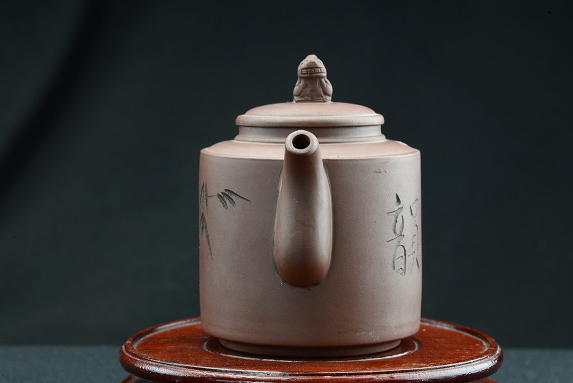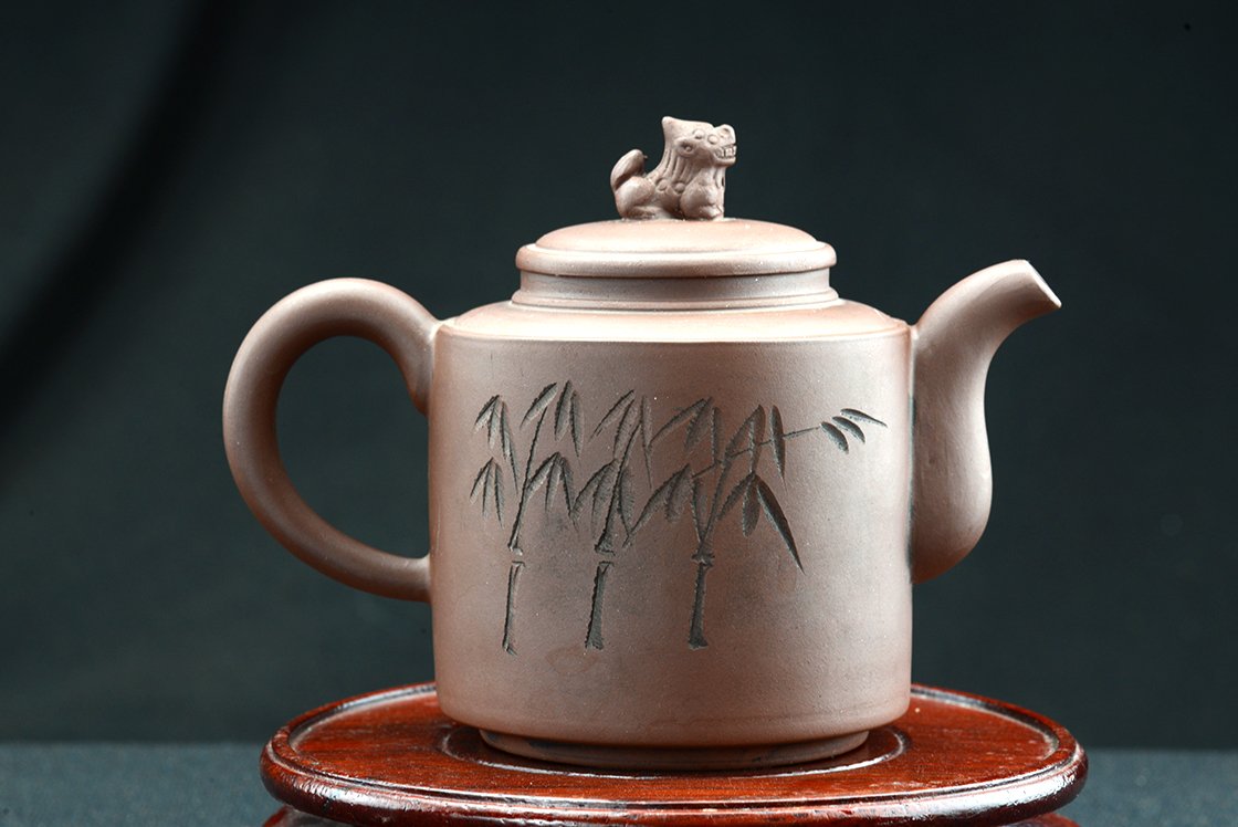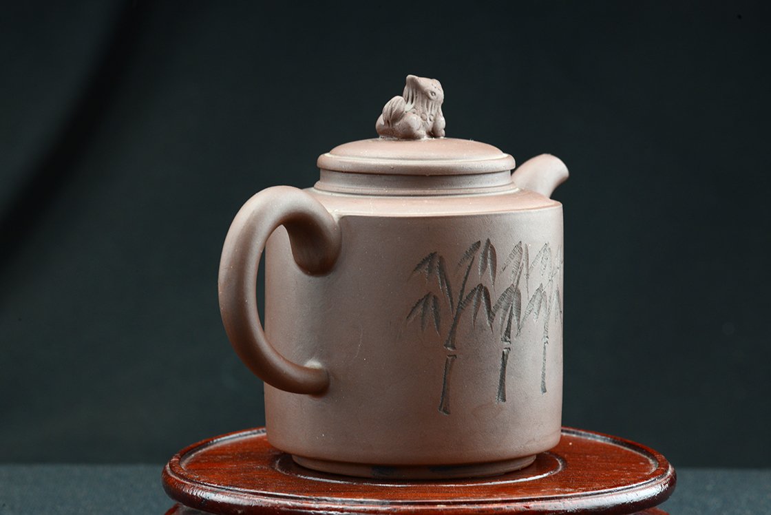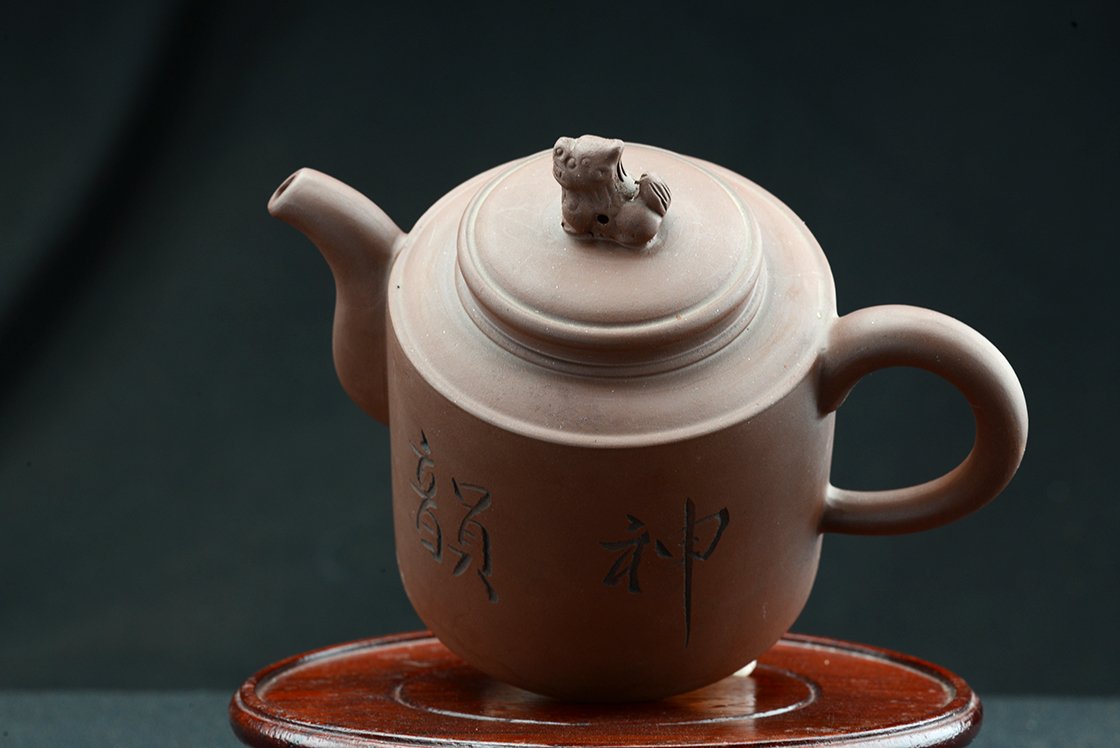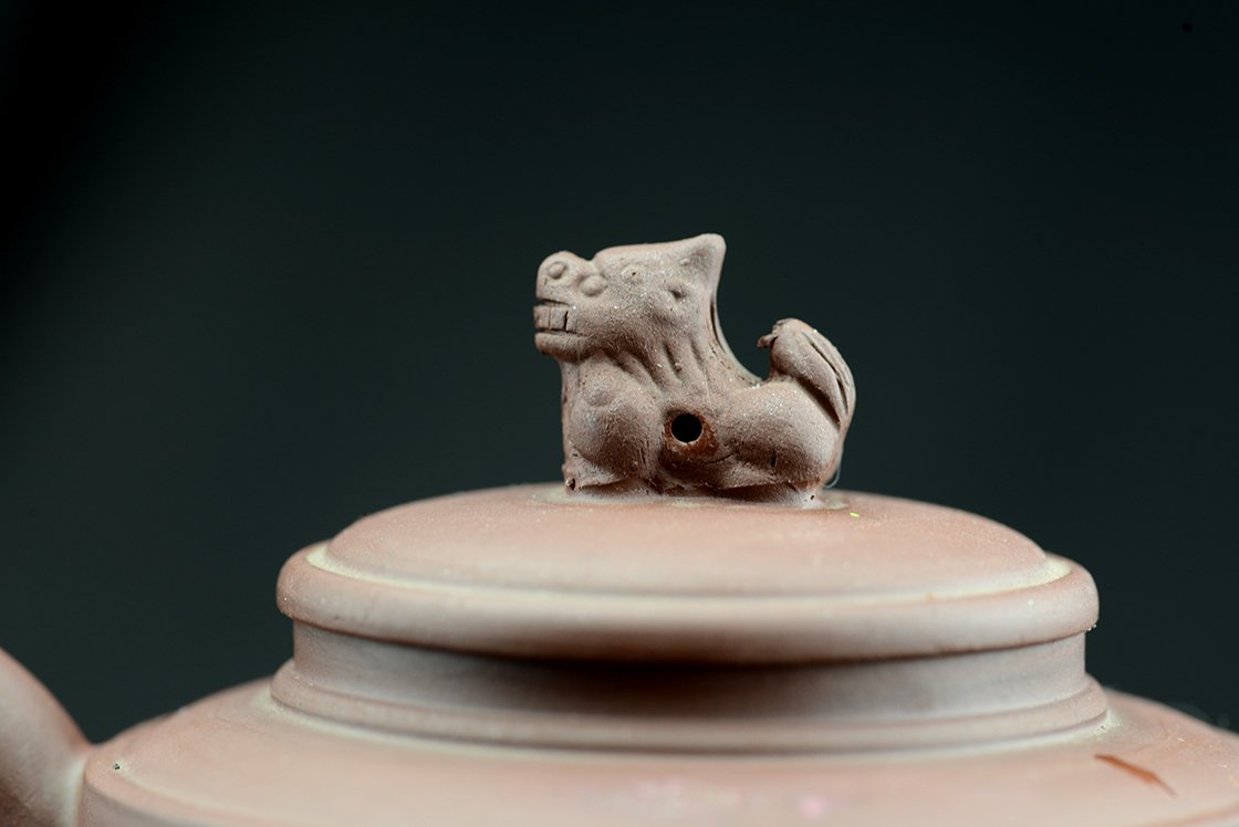Klasszikus alapon készült felhúzott henger alakú yixing kanna oroszlános dísszel. Különösen alkalmas oolong és más nagy levelű puerh teák fogadására.