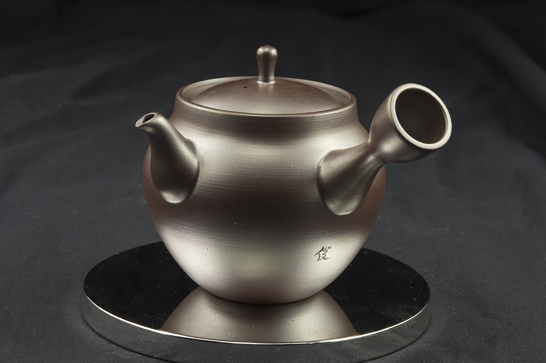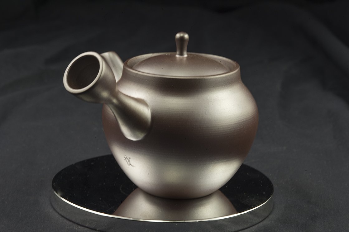 270 ml űrtartalmú kézműves Banko yaki kanna a fiatal keramikus Shun Otsuki műhelyéből. A banko yakiról itt írtunk részletesebben. A legpontosabb japán kerámiafajta, ami mindenféle tea elkészítésére alkalmas. A kanna formája modern és klasszikus elemeket tartalmaz, a kanna süvege tipikus banko, a test modern vonalú.
