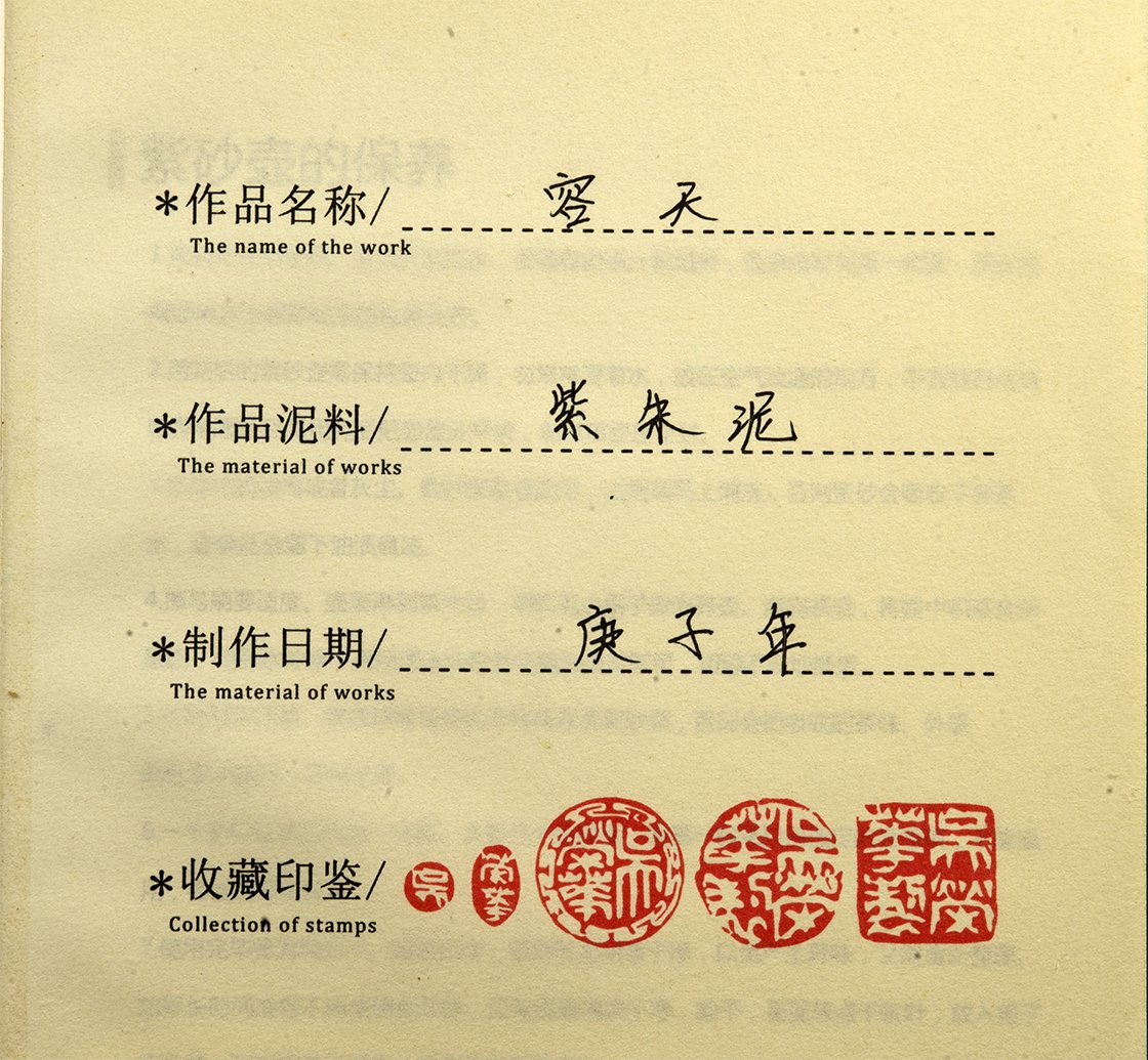 A keramikus Wu Rong Hua. A kanna igazolásán a kanna típusának Rong Tian van megadva, ez a Pan hu egyik fajtája.
