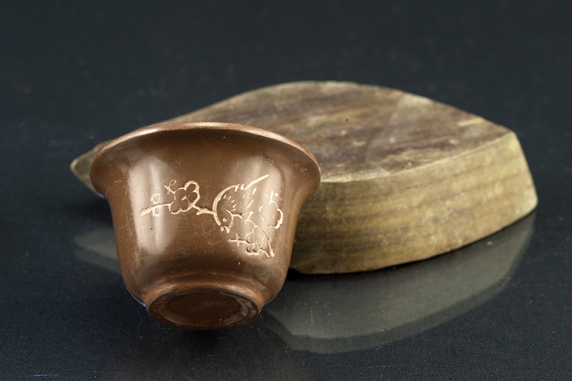 中国 欽州 泥興陶 梅鳥図茶器揃 蓋物