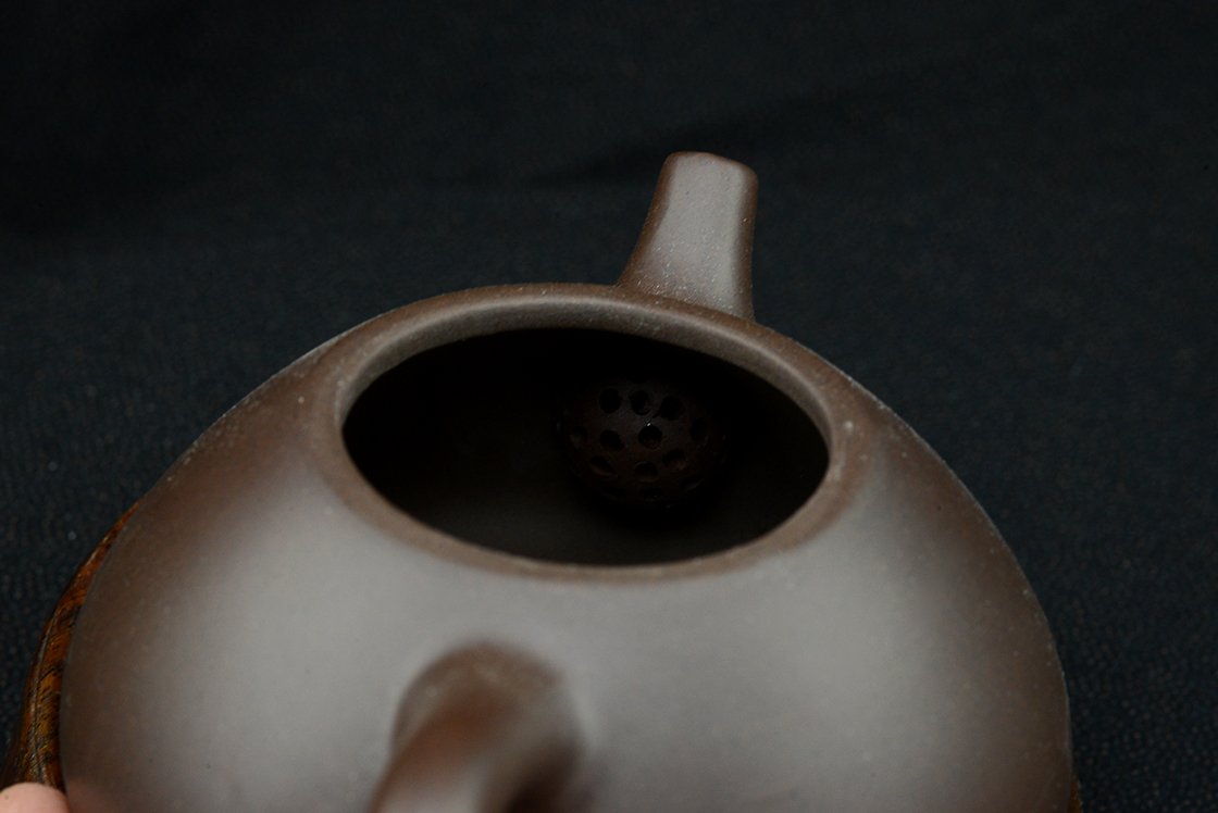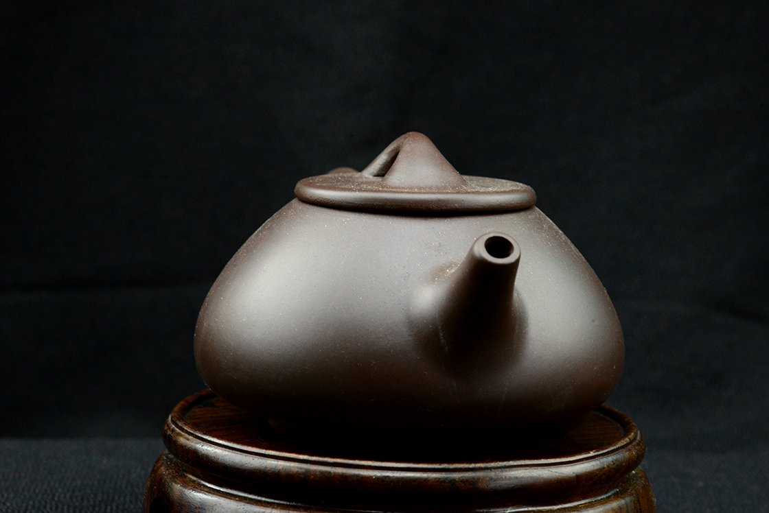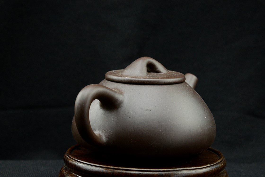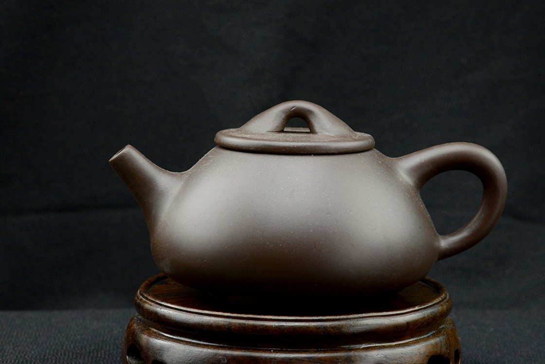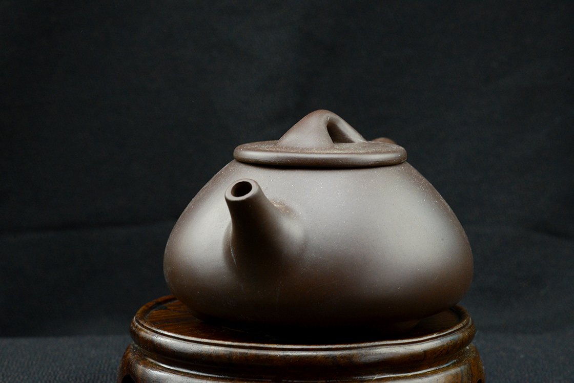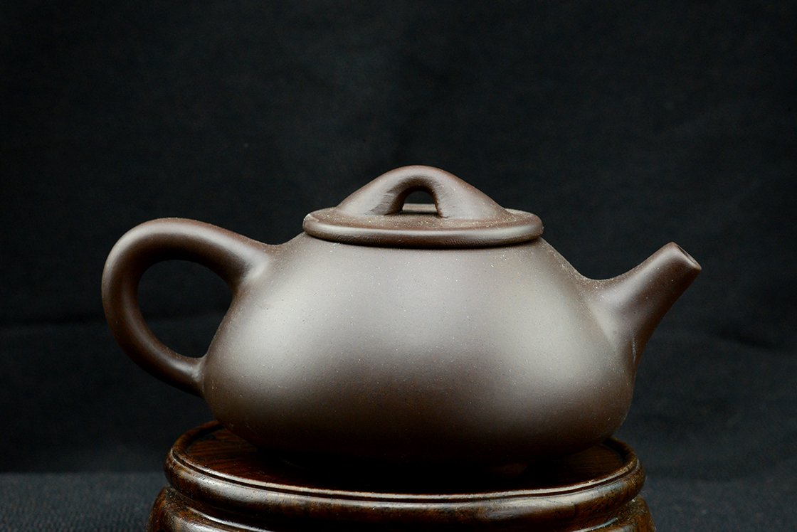 石瓢, Shi Piao (kőedény), klasszikus három lábon nyugvó, lapos, terjedelmes gyomrú yixing teáskanna. A kanna yixing agyagból van, de egyszerű, nem is a legpontosabb fajta. Kezdésnek viszont éppen megfelel. Bármilyen teához megfelelő, én leginkább sheng puerh teákhoz használnám. A kanna 12 cm hosszú, 6 cm magas, űrtartalma 190 ml, dobozban, selyemtasakkal együtt szállítjuk.