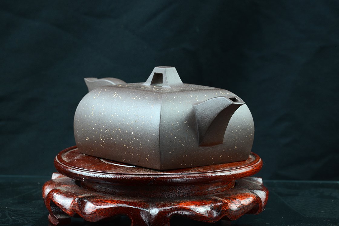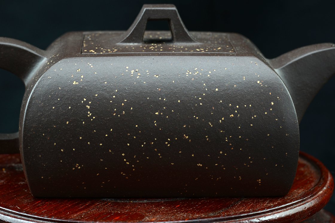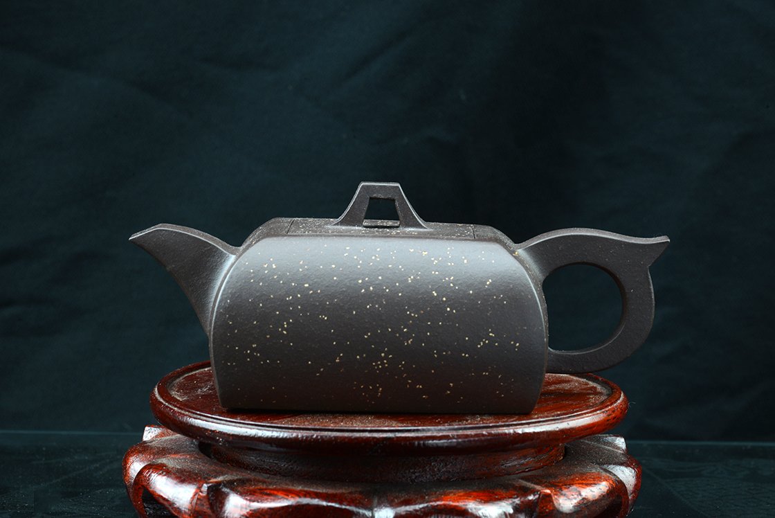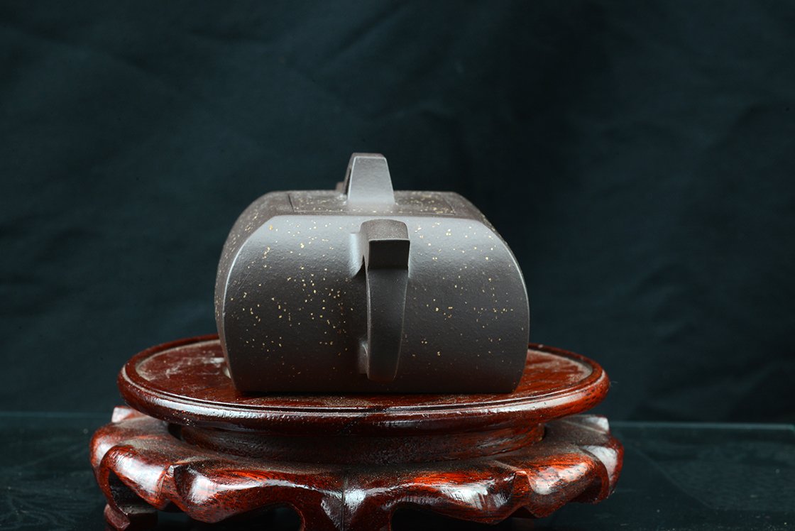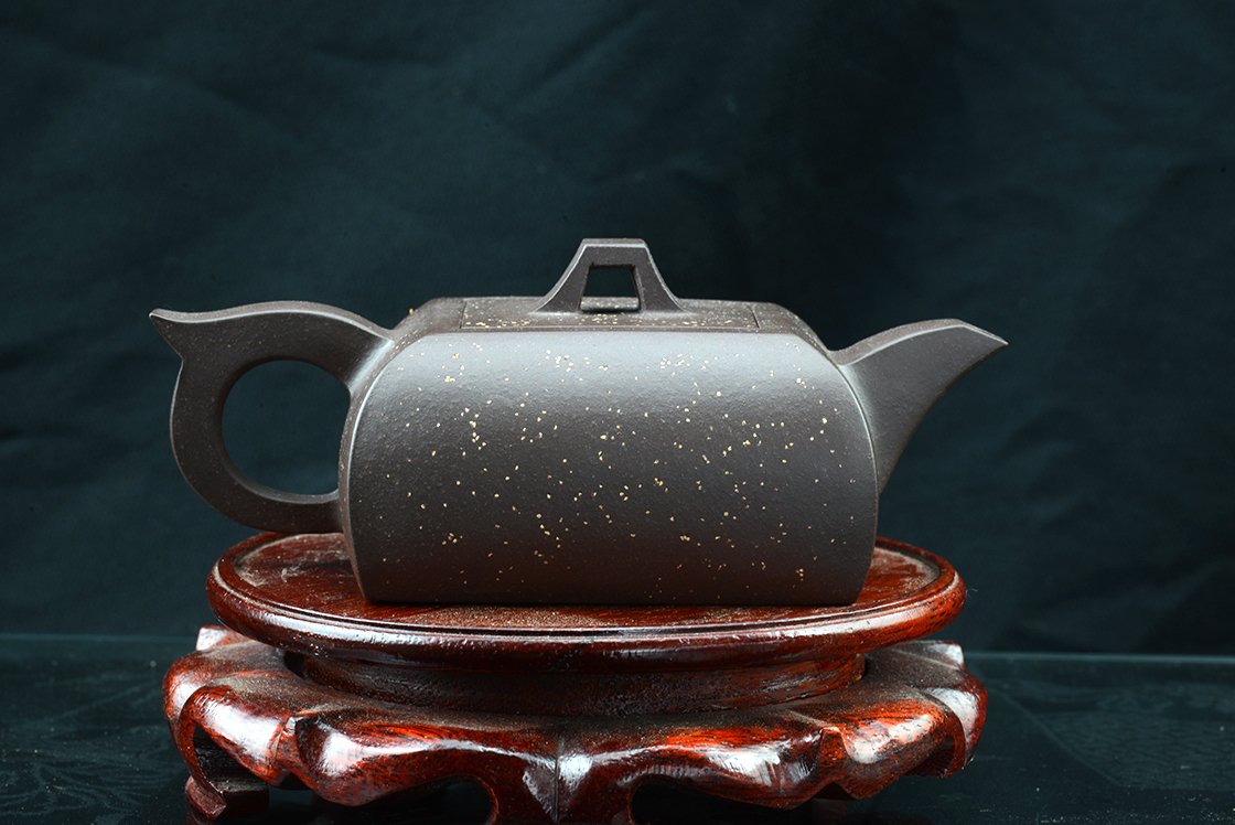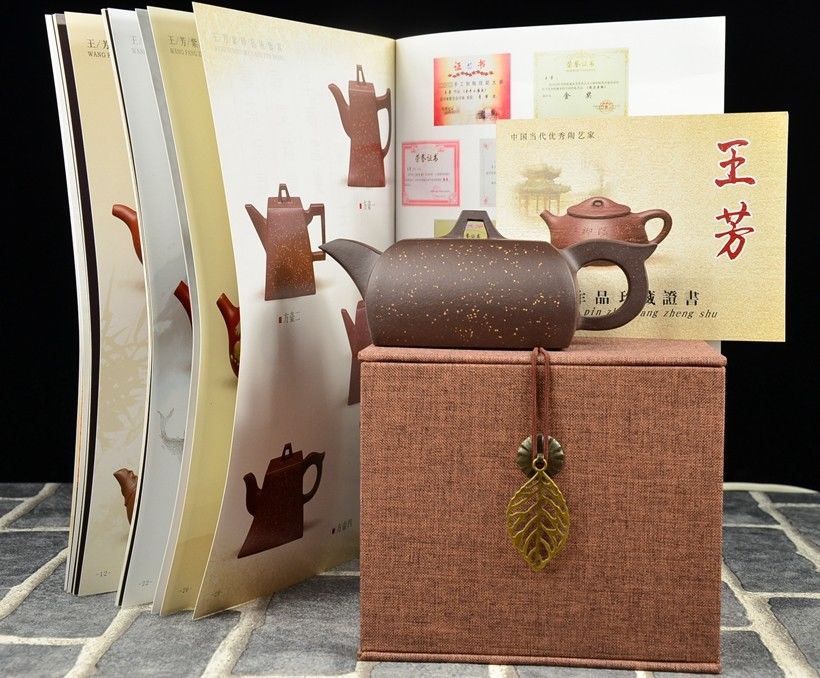 Si Fang azt jelenti négyszögletes. Ez a kanna valójában egyszerre négyszögletes és ívelt. Mindkettőt külön-külön is nehéz feladatnak számít elkészíteni, de a kettő együtt igazi mesterfeladat. A csillagos ég megjelenésű szatén kanna anyaga a Huang Long yixing bányából származik. A kannához, amelynek belső pecsétje hivatott igazolni különleges értékét, a díszdobozban lévő igazolás mellet egy nagyformátumú album is jár, ami a művésznő munkáit mutatja be. A művésznő Wang Fang 1975-ben született,a Képzőművészeti Egyetem elvégzése után Gao Lijun 高丽君 Nemzeti Kerámia Mester alatt gyakorolt, ma már saját műhelyében dolgozik. Gyűjteménybe való.