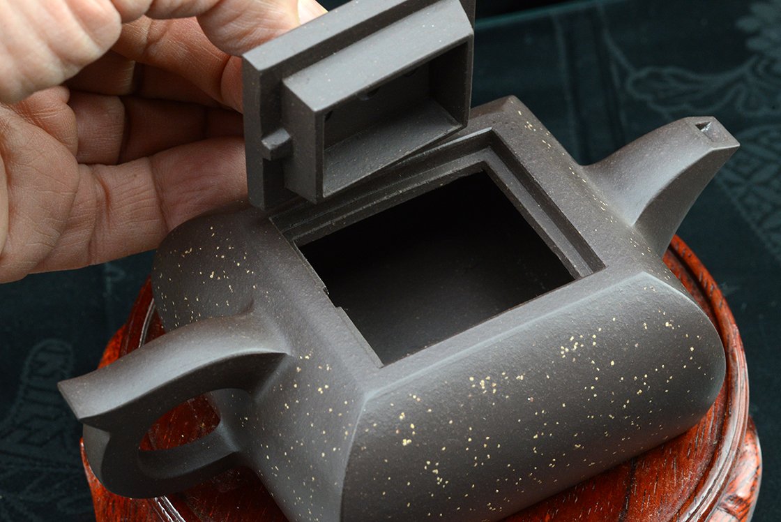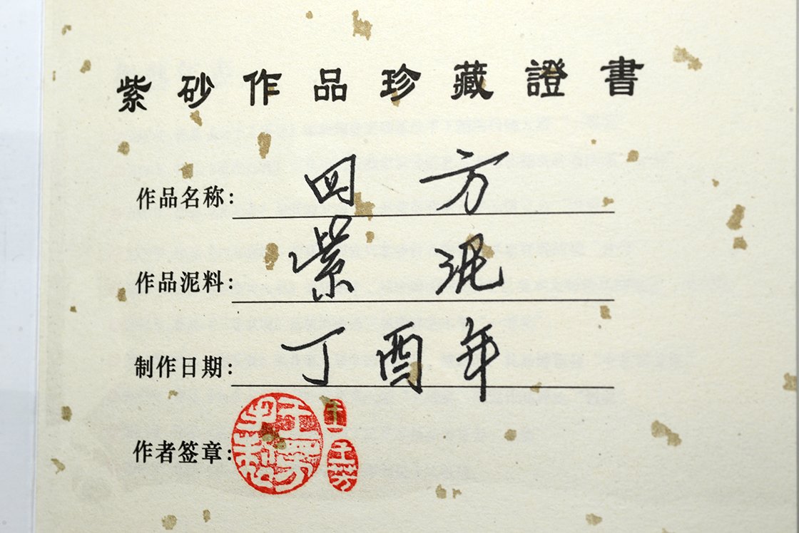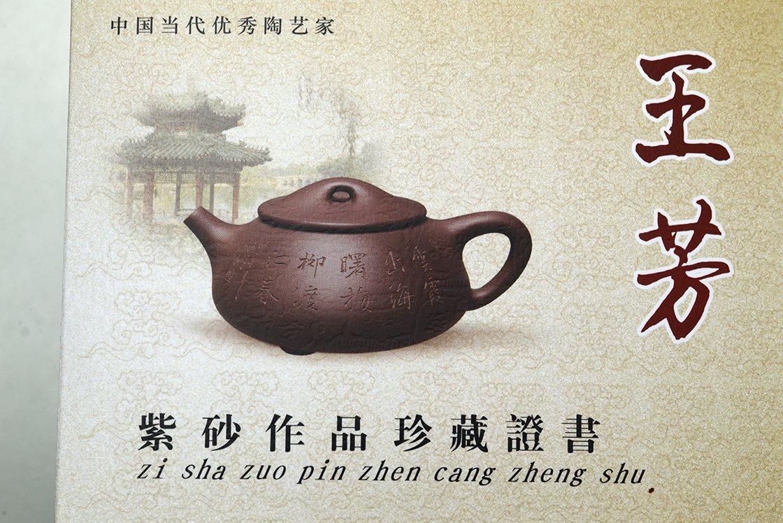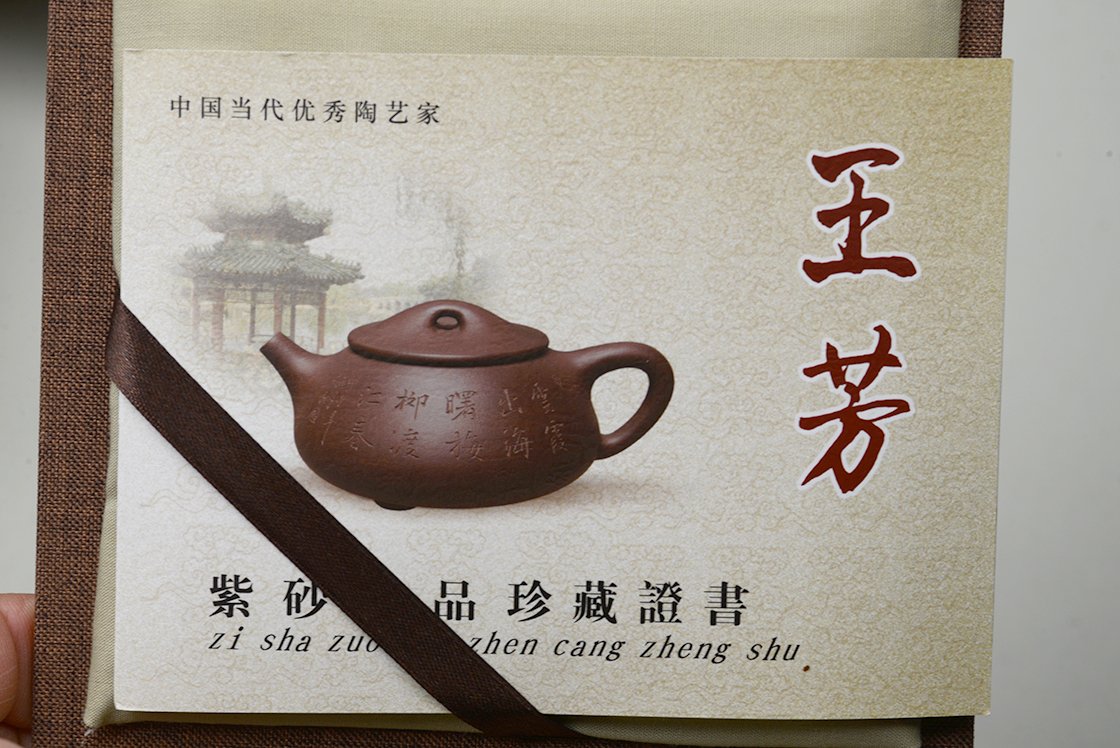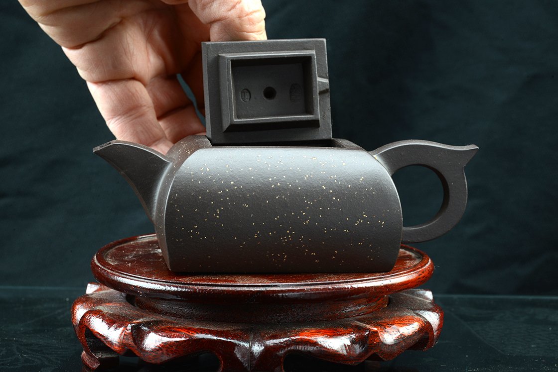 Si Fang azt jelenti négyszögletes. Ez a kanna valójában egyszerre négyszögletes és ívelt. Mindkettőt külön-külön is nehéz feladatnak számít elkészíteni, de a kettő együtt igazi mesterfeladat. A csillagos ég megjelenésű szatén kanna anyaga a Huang Long yixing bányából származik. A kannához, amelynek belső pecsétje hivatott igazolni különleges értékét, a díszdobozban lévő igazolás mellet egy nagyformátumú album is jár, ami a művésznő munkáit mutatja be. A művésznő Wang Fang 1975-ben született,a Képzőművészeti Egyetem elvégzése után Gao Lijun 高丽君 Nemzeti Kerámia Mester alatt gyakorolt, ma már saját műhelyében dolgozik. Gyűjteménybe való.