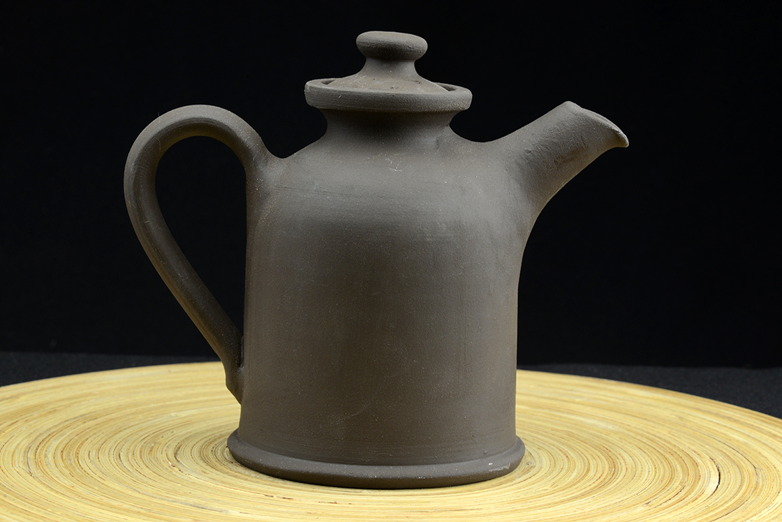 Primitív, redukciós égetéssel készített, mázatlan agyag teáskanna, ami mindemellett nagyon hálásan szolgálja ki a fekete és tejes teákat. Csésze jelenleg nem kapható.