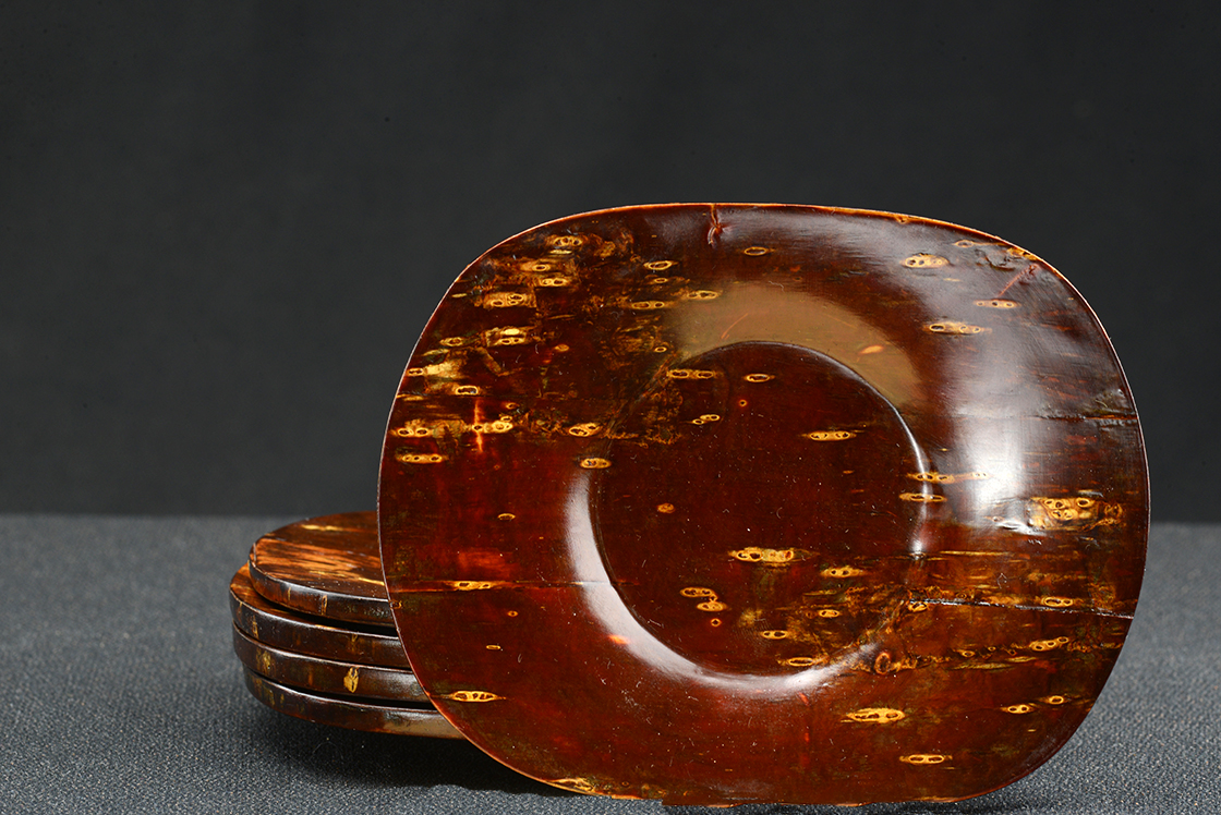 12 cm átmérőjű teáscsésze alátét közepes méretű csészékhez. A lakkozás itt nem az alátét dísze, nem hivalkodó és nem is védi úgy, mint a tucatszor lakkozott tárgyakat.