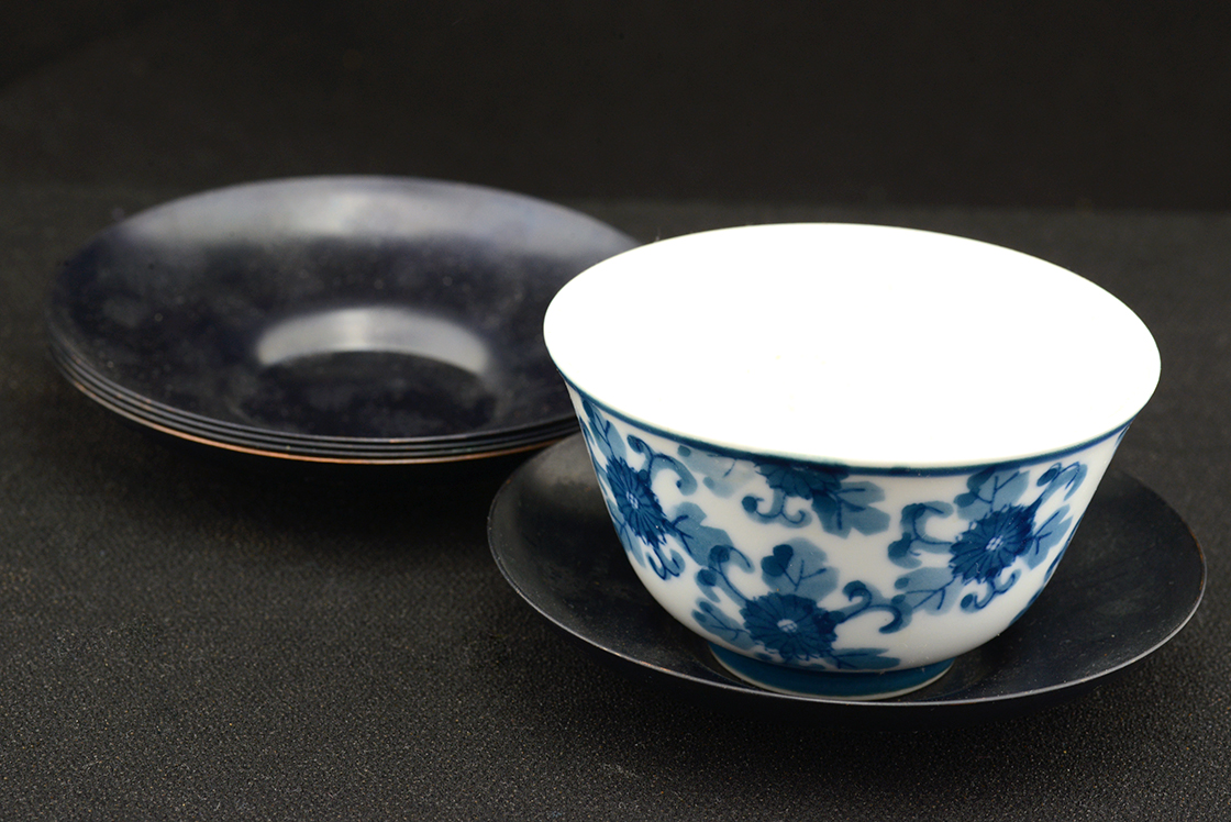 Réz chataku teáscsésze alátét készlet