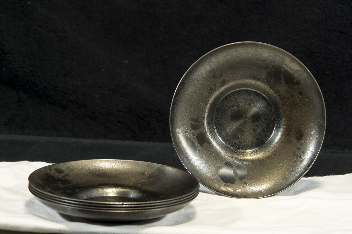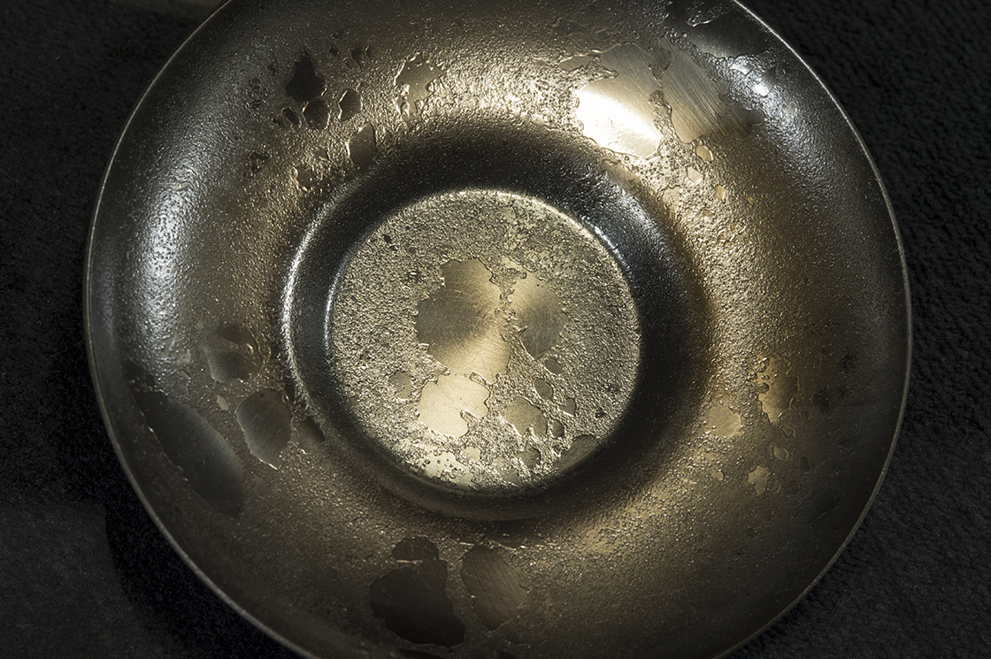 Réz chataku teáscsésze alátét készlet Zuisho műhelyéből, a Takaoka fémművesség területéről. Az alátétek 11,0 cm átmérőjűek1,7 cm magasak.