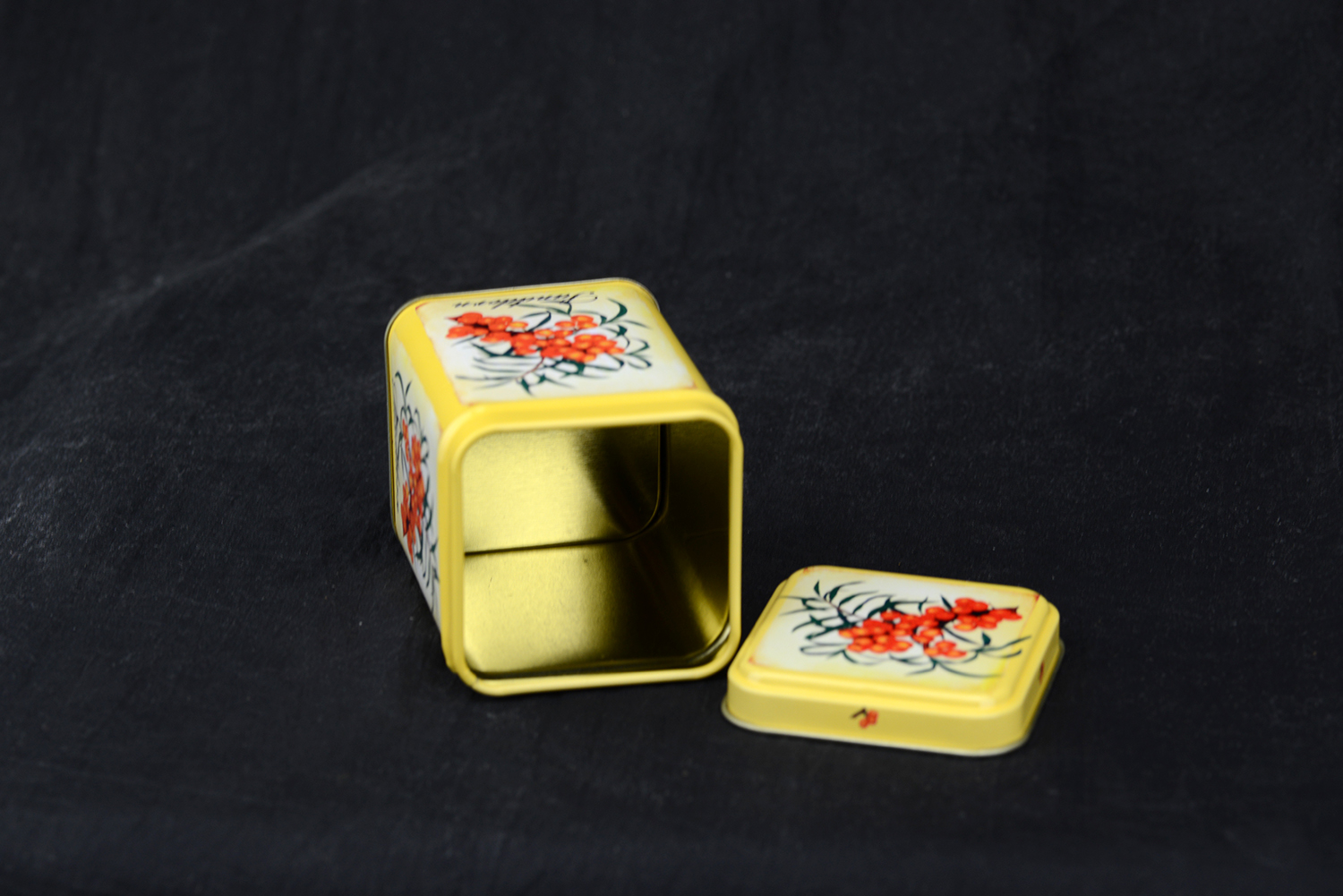 8 cm magas, 6 cm széles teatartó doboz kb. 50 gramm tea tárolására.