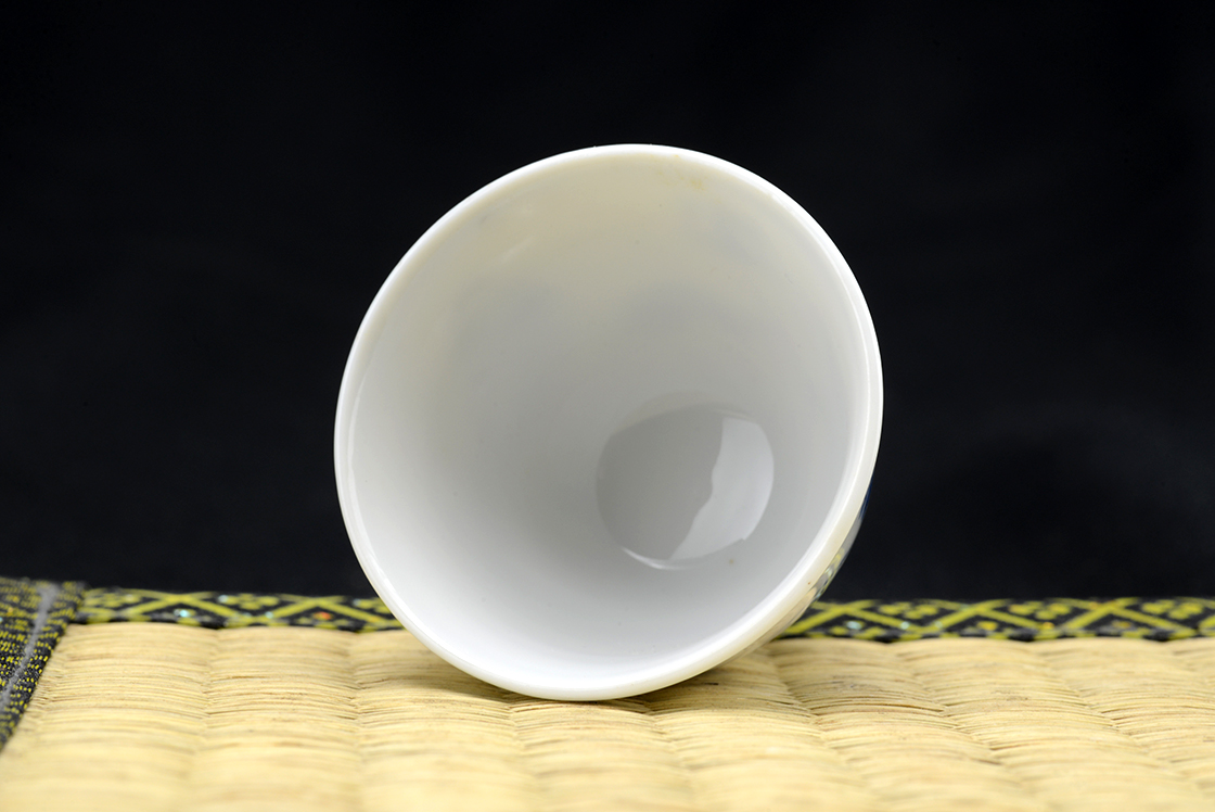 Kézzel festett finom porcelán teáscsésze készlet Kyotóból. A készlet, ahogy az szokás öt csészéből áll, egy csésze átmérője 5 cm, magassága 6 cm. Űrtartalma kb. 50-60 ml.