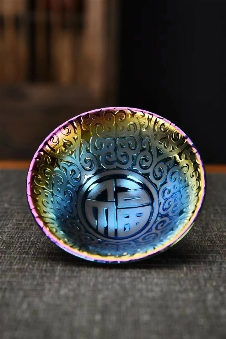 A tenmoku 天目 feltámad és és mint ilyen, visszatér a szülőhazájába Kínába, Fujianba. Kékes ezüstös, 7 cm átmérőjű, 5 cm magas, kb 80 ml űrtartalmú csésze. Nevezhetjük teás, vagy szakés csészének, vagy aminek akarjuk, az igazi funkciója valójában az, hogy van és szép.