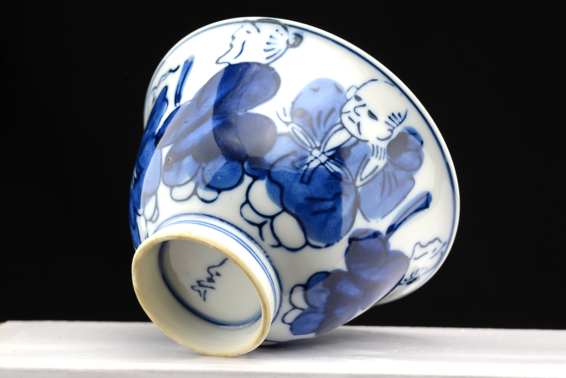 Kézzel festett, finom porcelán teáscsésze készlet, ami öt csészéből áll. A csészék közepes nagyságúak 7,5 cm átmérőjű, 6 cm magasak, kb. 60 ml űrtartalmúak, az ár az öt csészére vonatkozik.