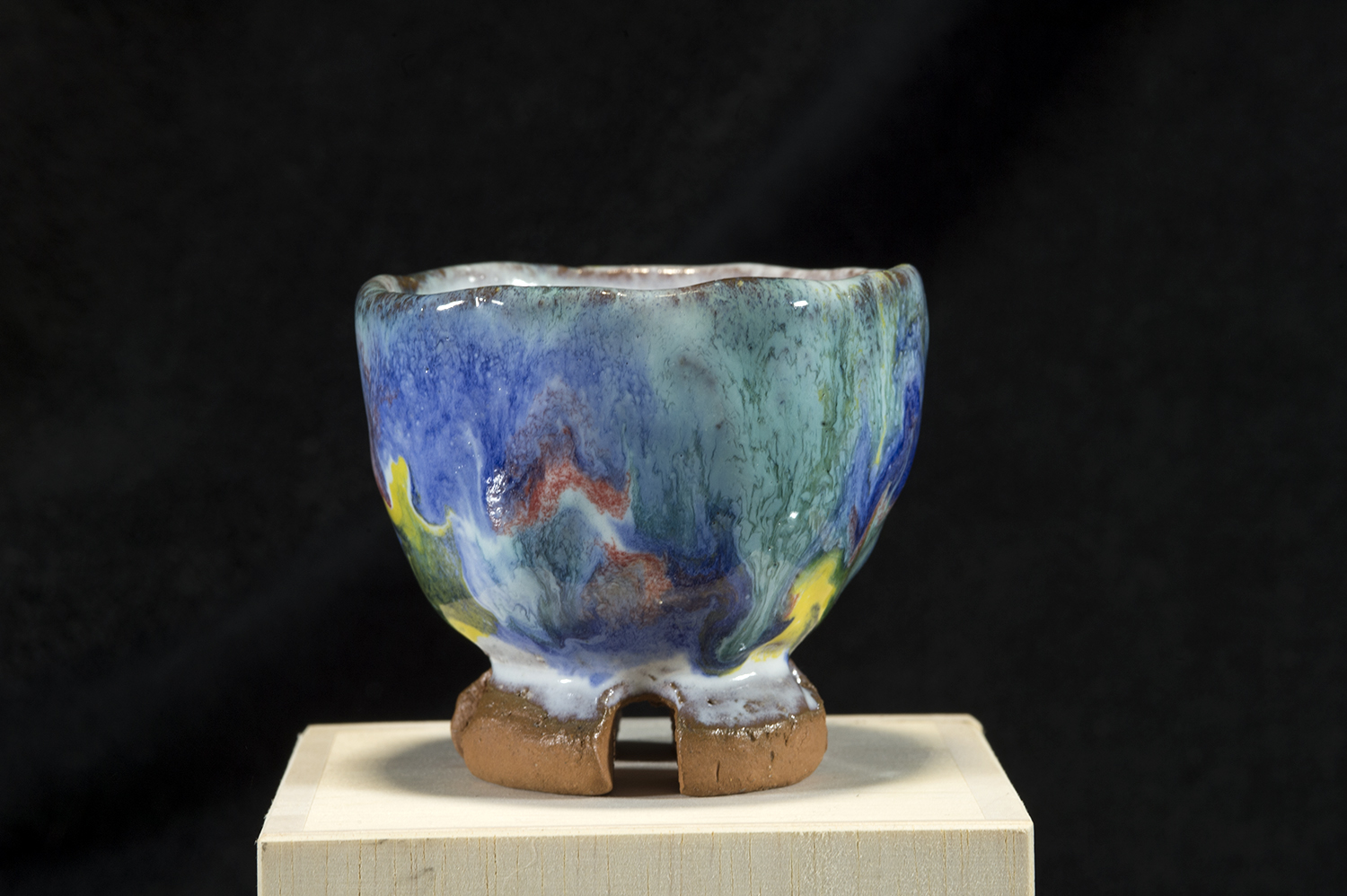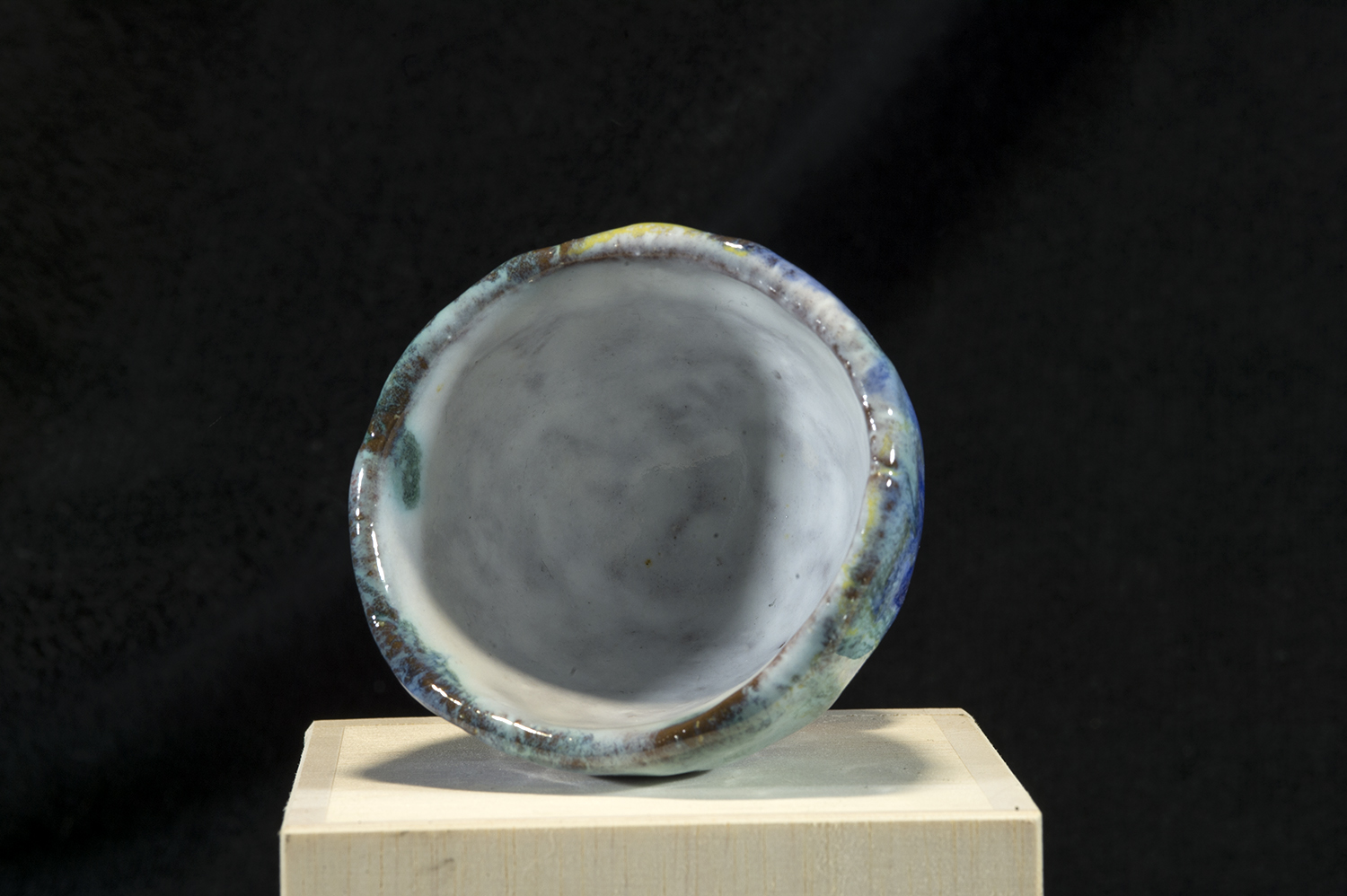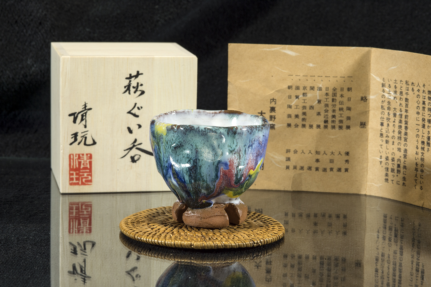 7 cm átmérőjű, 6,2 cm magas Hagi kerámia teás/szakés csésze Yamane Seigan műhelyéből.