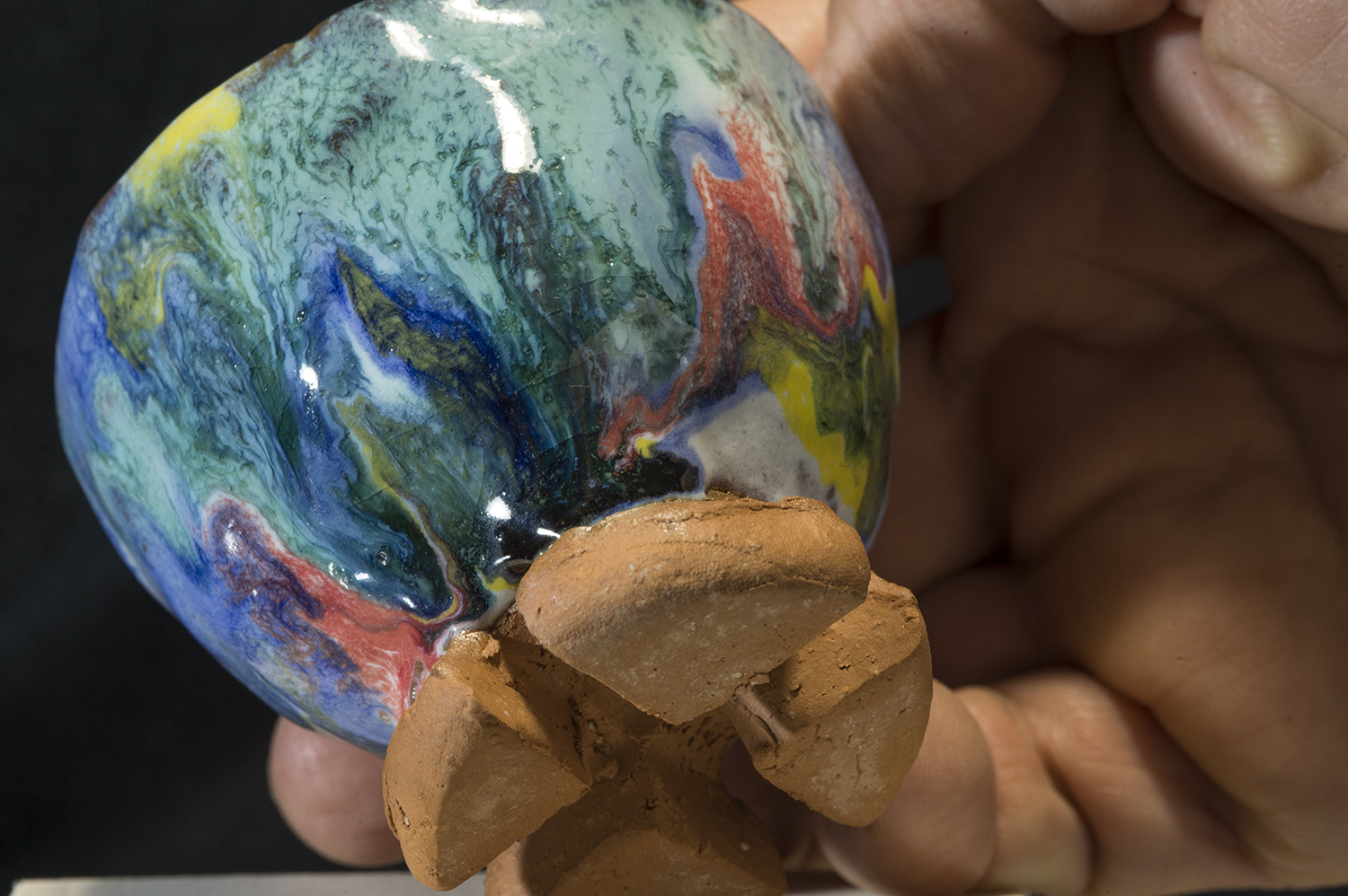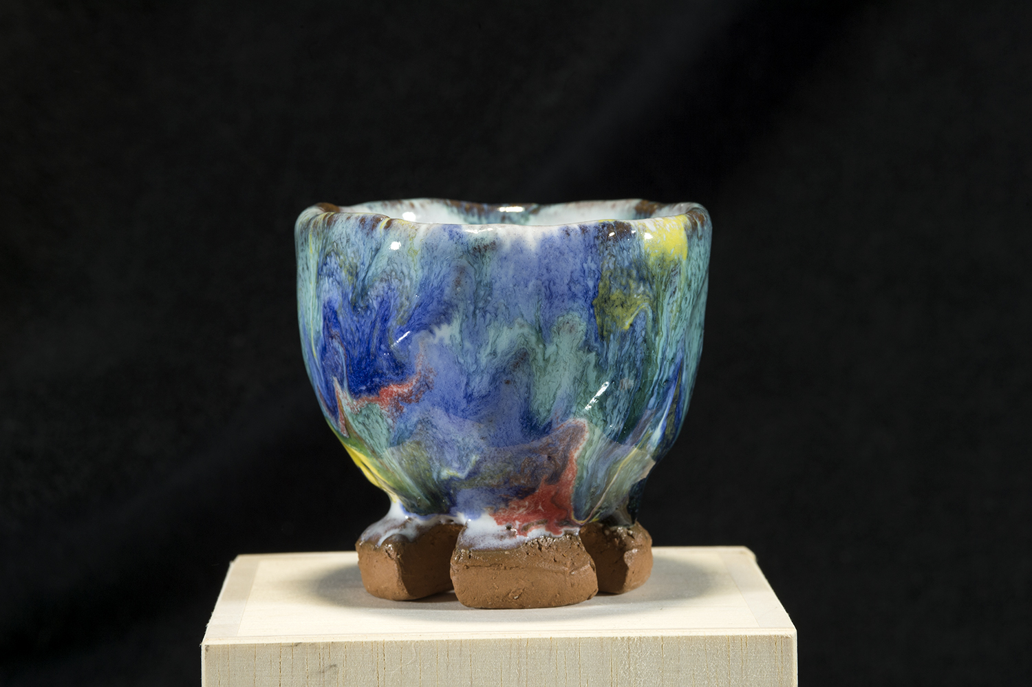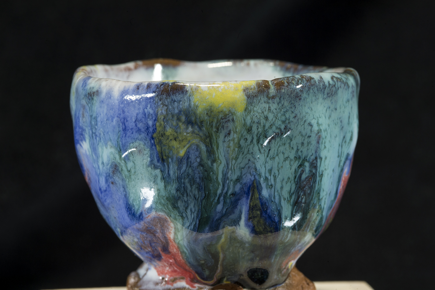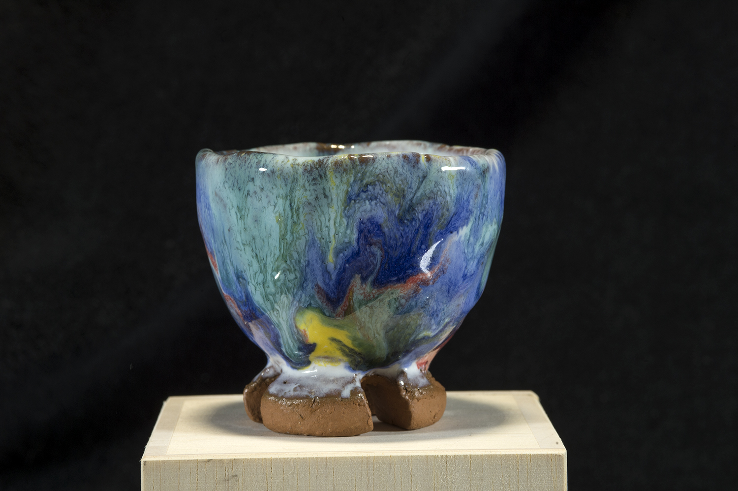 7 cm átmérőjű, 6,2 cm magas Hagi kerámia teás/szakés csésze Yamane Seigan műhelyéből.