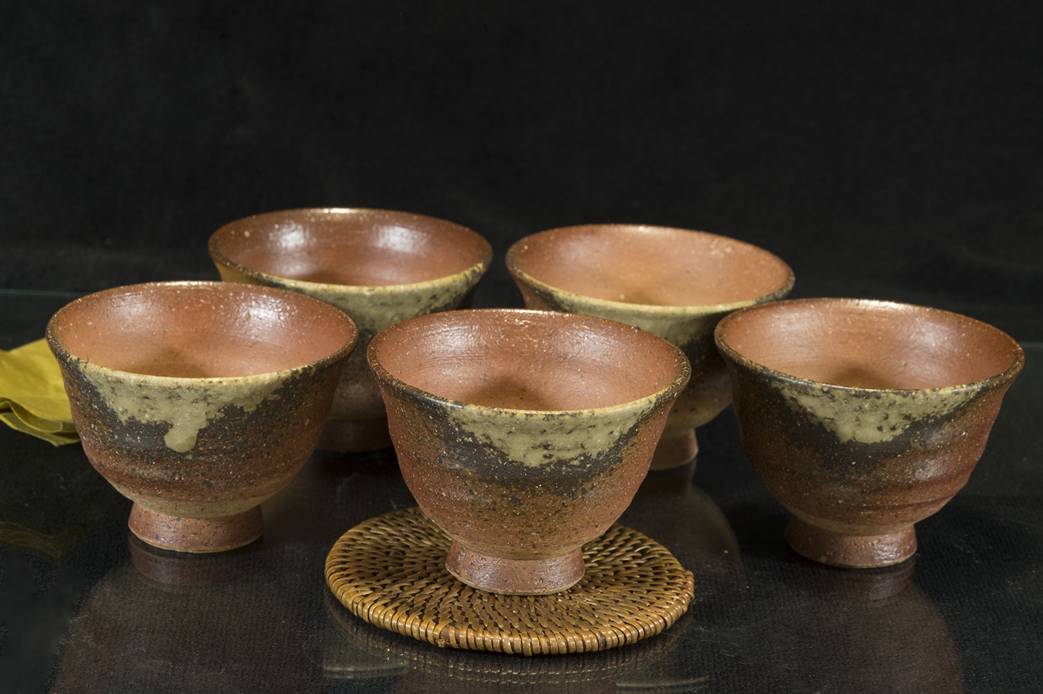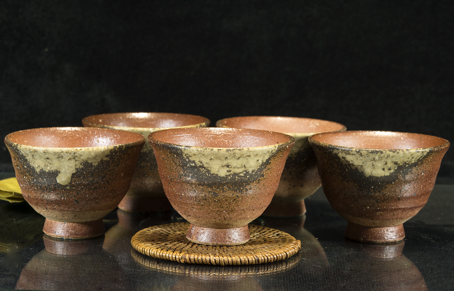 Az ár az öt csészére vonatkozik, mindegyik egyéni fatüzes, hamumázas mintával.