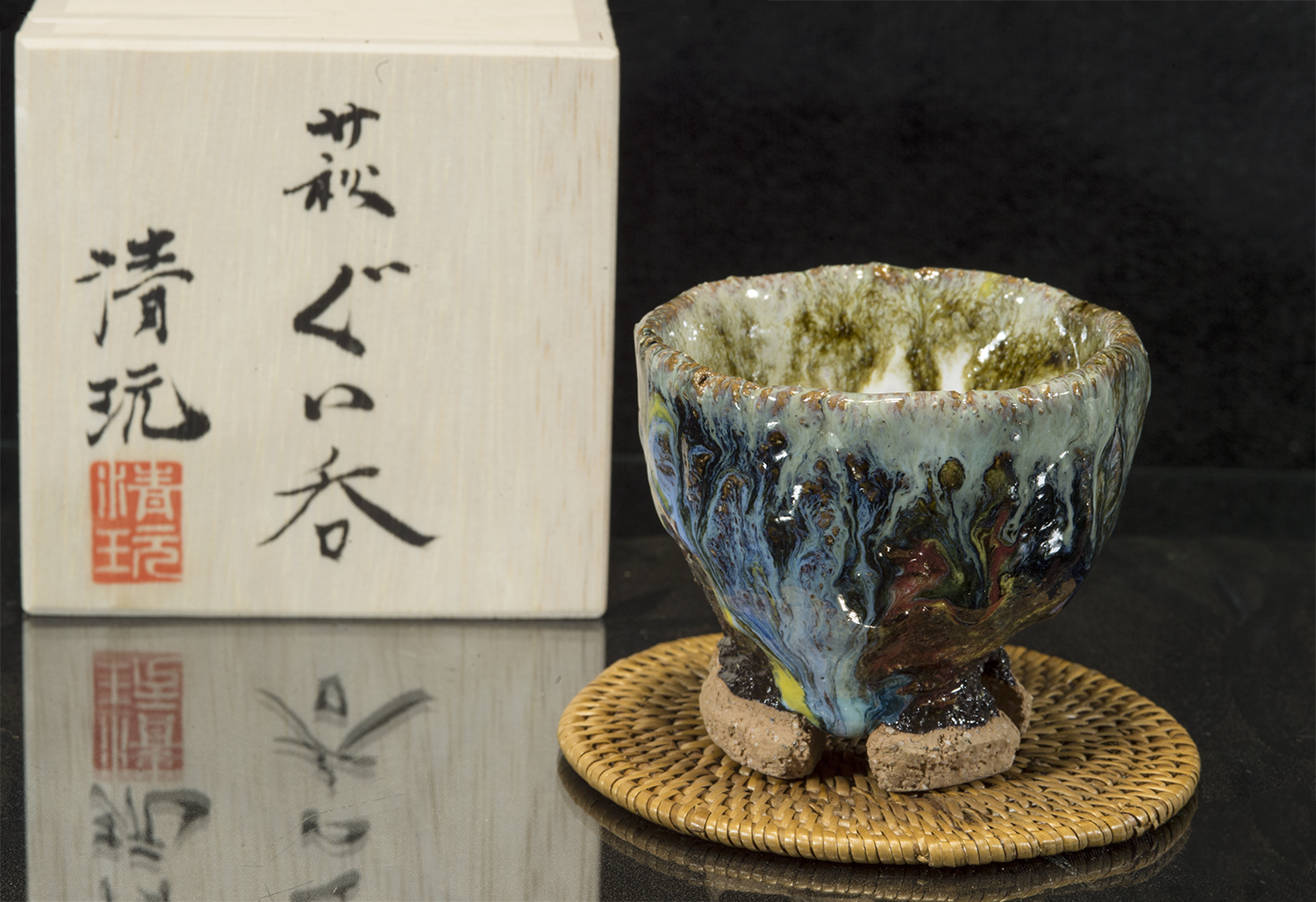 7,2 cm átmérőjű 6,2 cm magasságú Hagi teás/szakés csésze Yamane Seigan műhelyéből.