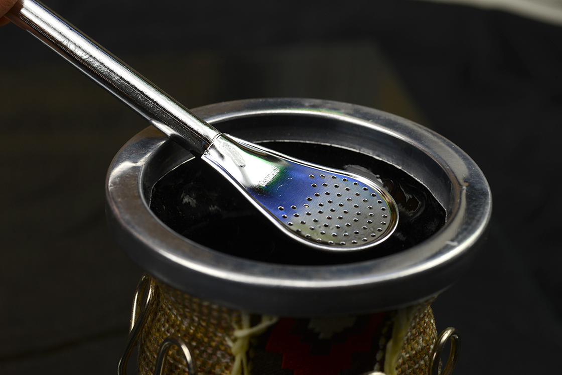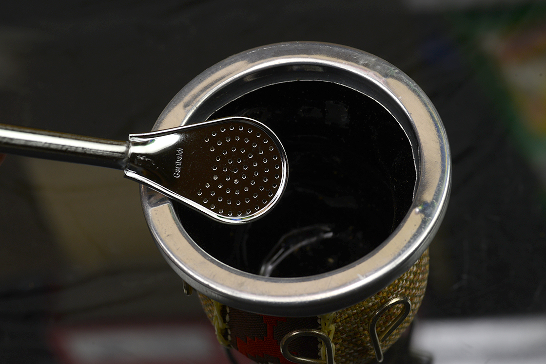 Ekkkor két módszerhez folyamodhatunk. Egyrészt a mate tökben az Itaipú-gát mintájára féloldalasan, gondosan kimunkált félkörívben gátat építünk a matéból és a vizet ezentúl nem a matéra, hanem a mate mellé öntjük. Ekkor már megpróbálhatjuk a normál bombilla használatát, de gyakran előfordul, hogy még ekkor is alulmaradunk a drága nedűért folytatott küzdelemben. Ekkor vethetjük be a képen látható lapos, lapátszerű bombillát, ami az évszázadok alatt felhalmozott mate eltömődési emlékezetnek köszönhetően fejlődött ki. Ezt a bombillát búvárkacsaszerűen alámerítve, de még inkább pelikánmódszerrel a szűrendő mate tó felszínére szorítva használjuk.