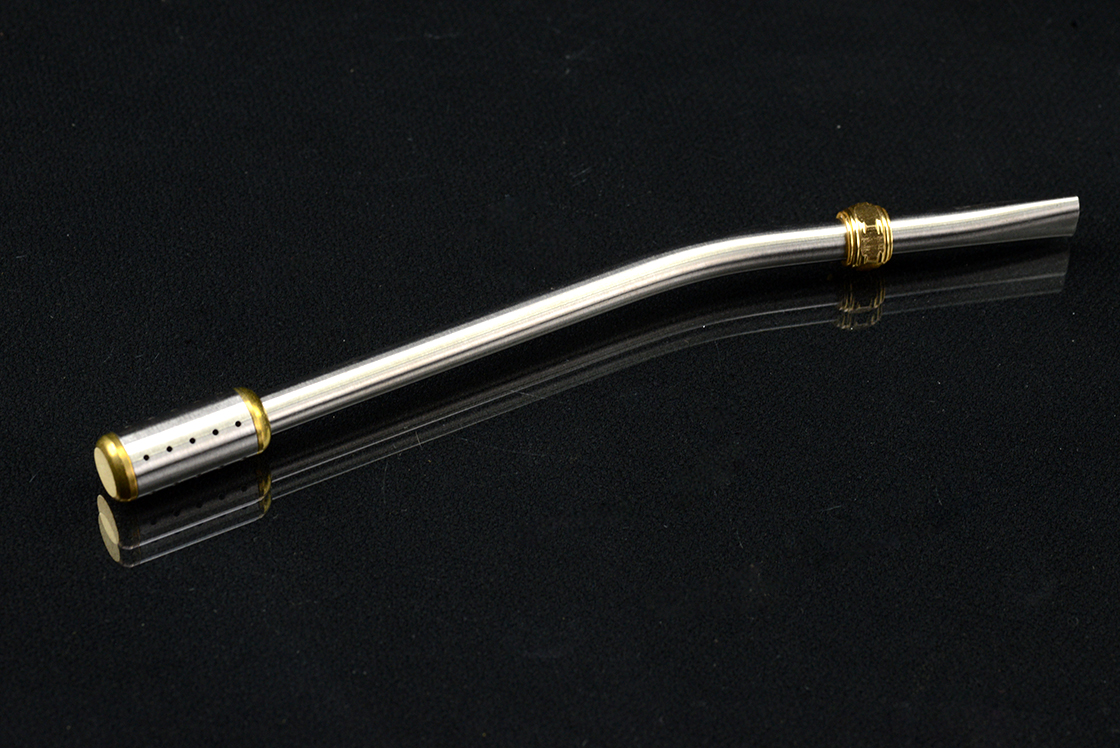 Inox acél bombilla, aminek feje teljesen szétszedhető, benne finomszövésű inox acélháló. A bombilla 16 cm hosszú. A díszítésről egy hatos anya gondoskodik. Egyébként talán a legjobb.