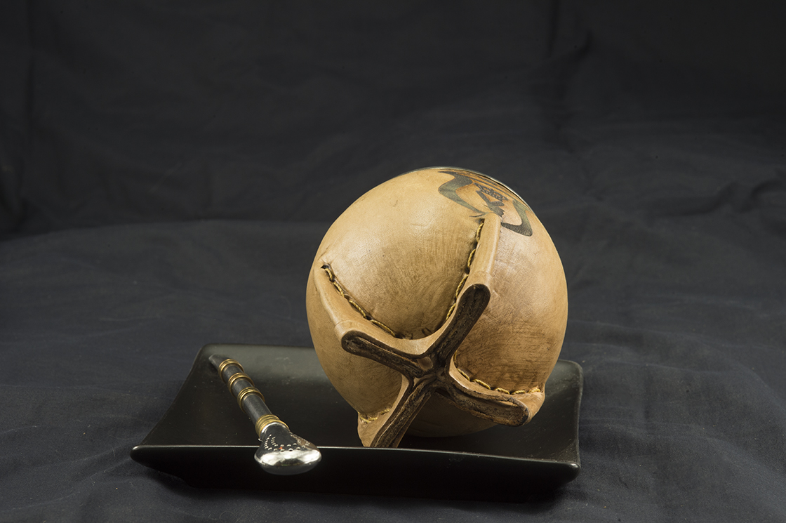 - 1 db bőrbe kötött masszív Rei Verde tök, avagy Rei Verde Cuia Uruguaia de Porongo