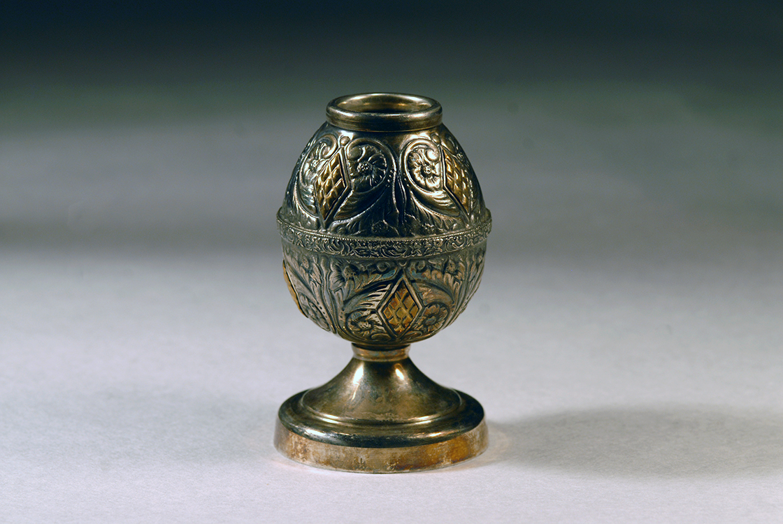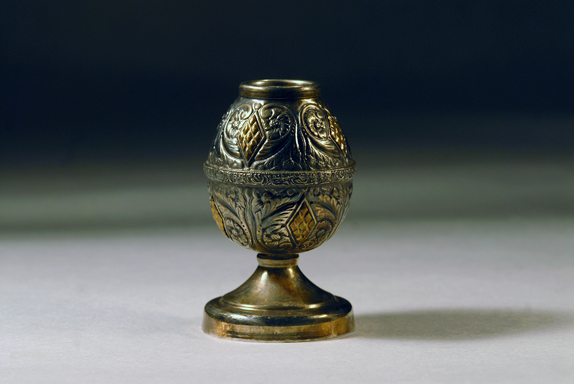 Cizellált, talpas fémtök