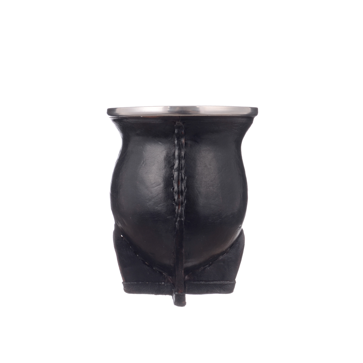 Ez is egy bőrrel és inox karimával fedett mate tök, ami 13 cm magas 10 cm átmérőjű.