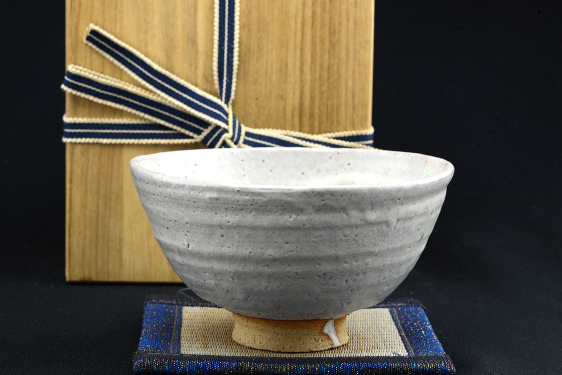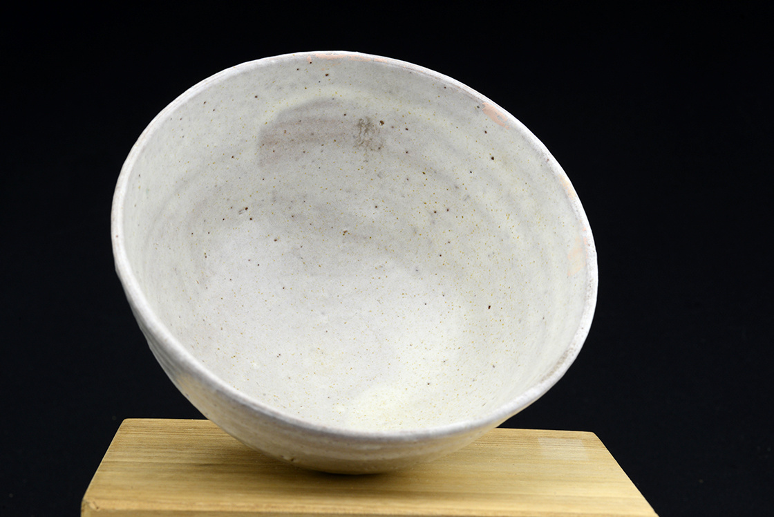 15 cm átmérőjű, 8,7 cm magas ido chawan. Az Ido név erre a széles tölcsérszerű formájú ún. "korai" chawan formára vonatkozik, ami a XVI. században került Koreából Japánba és a wabi sabi megtestesülése. Itt lentebb a korai chawanok egyik példánya a nemzeti kincsként nyilvántartott Kizaemon.