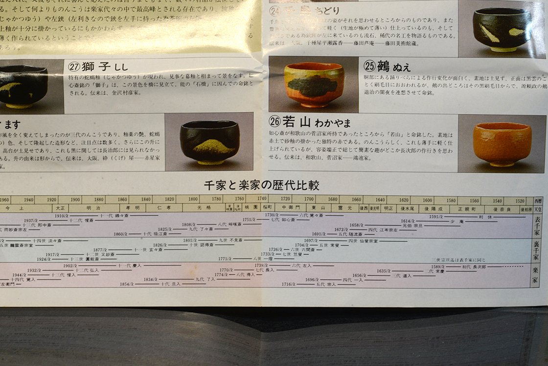 A csészéhez adott prospektus bemutatja a raku történetét.
