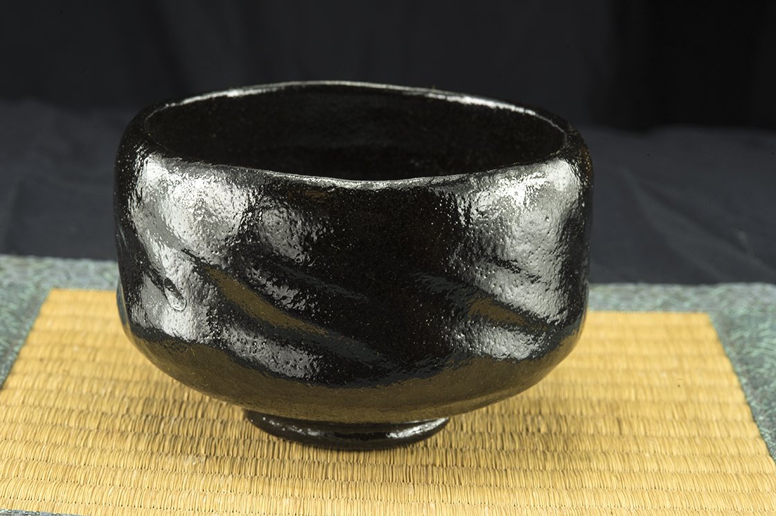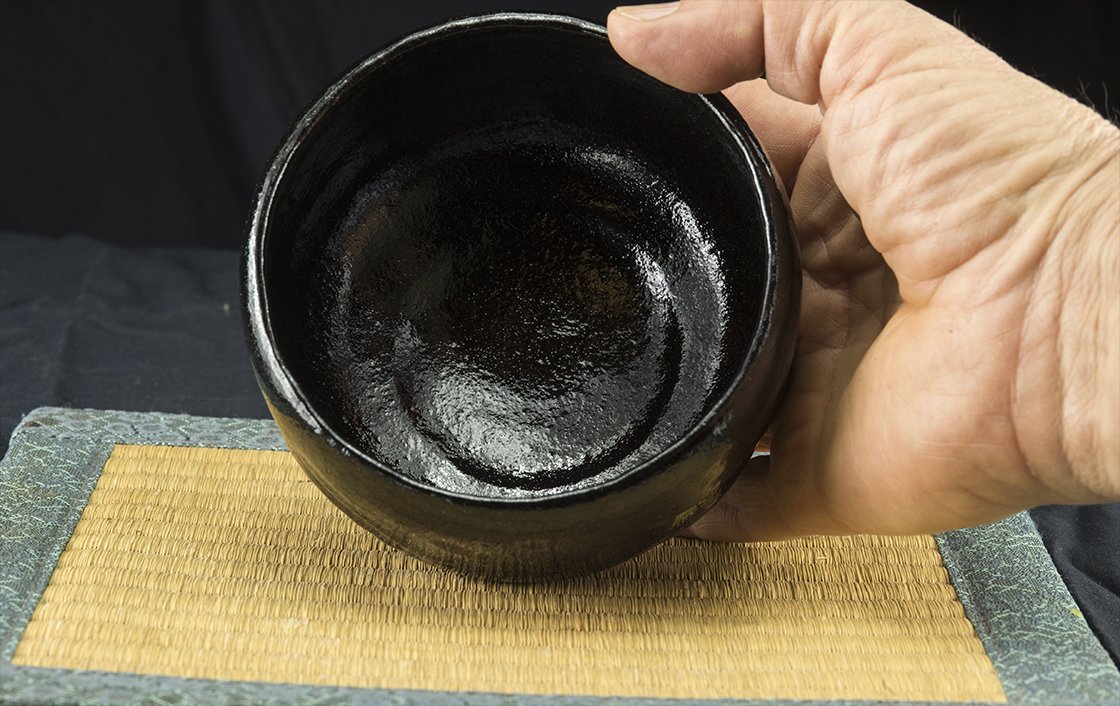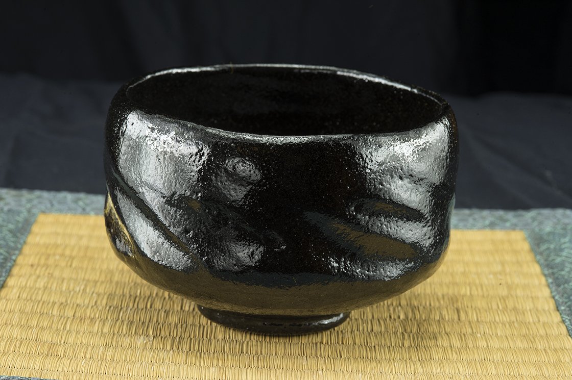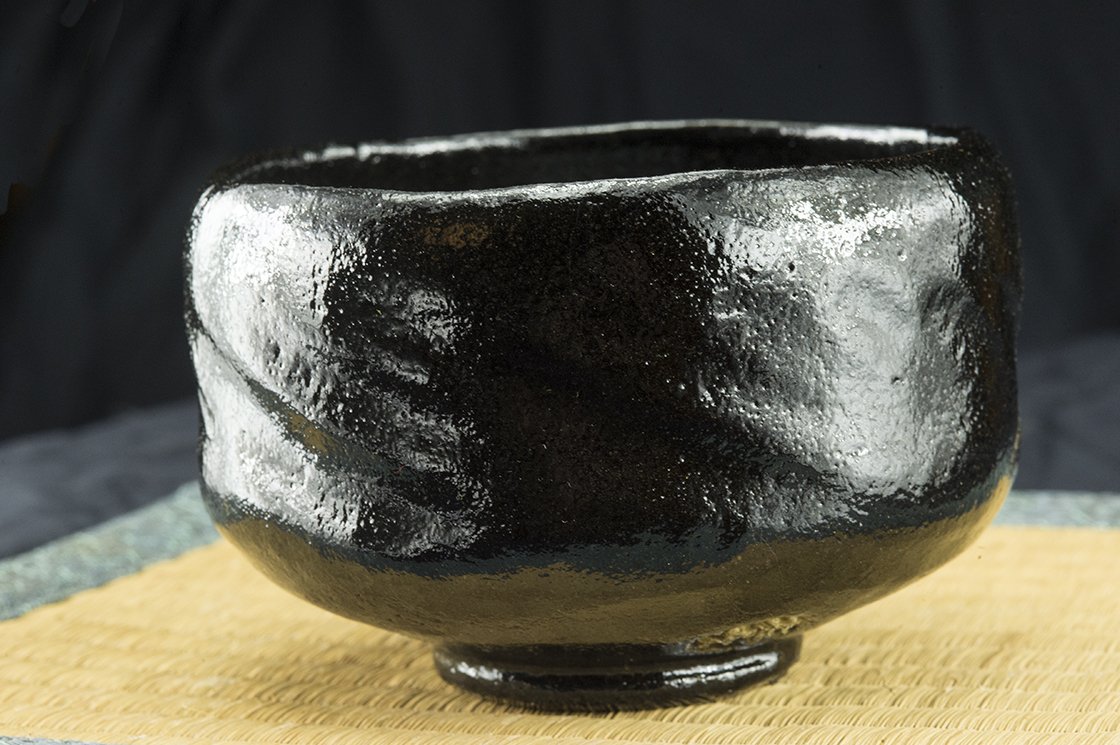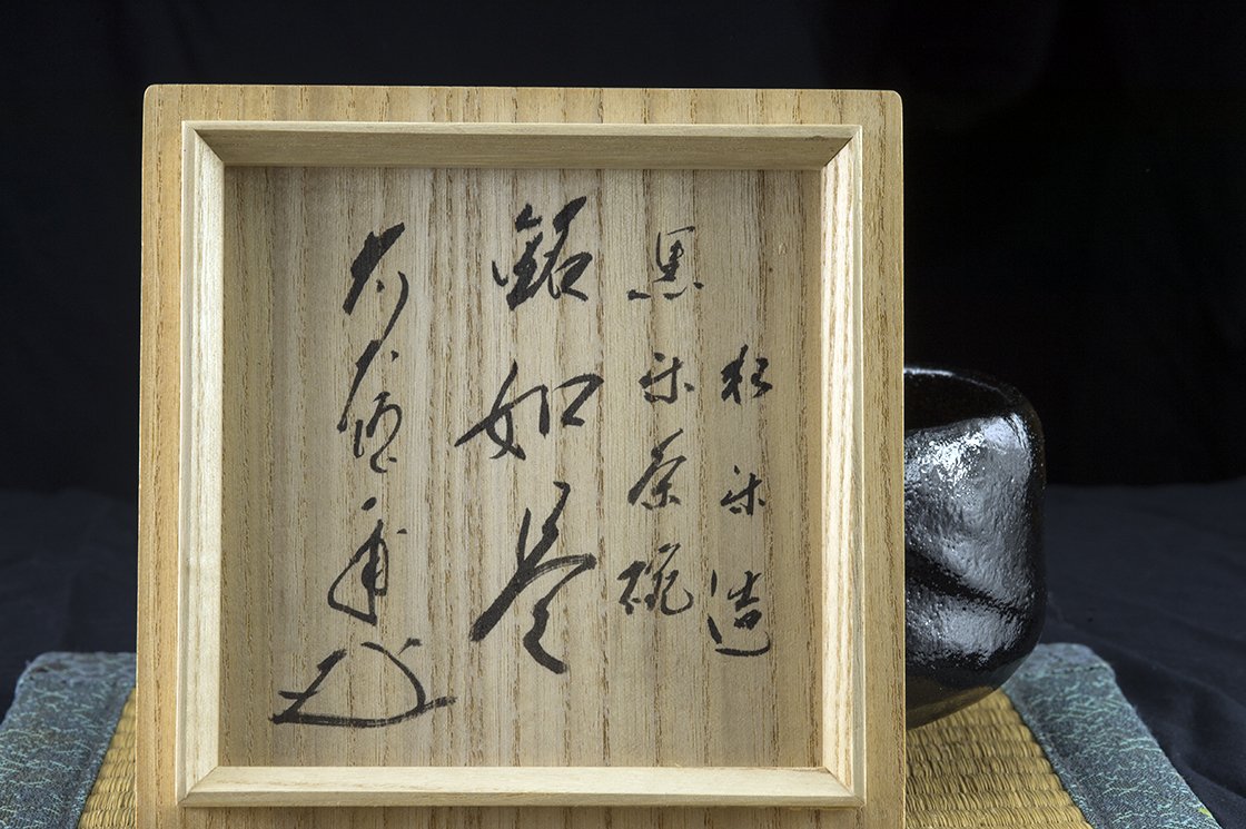 Fekete raku chawan Shoraku Sasaki kiotói műhelyéből.