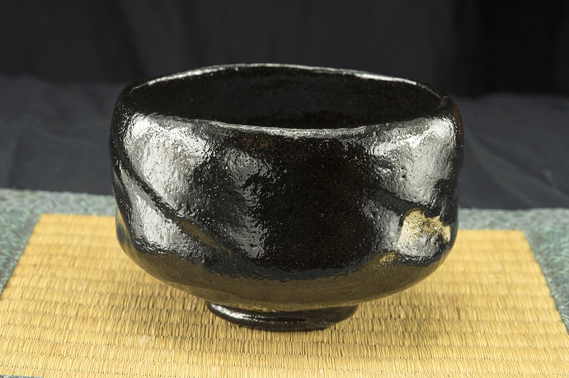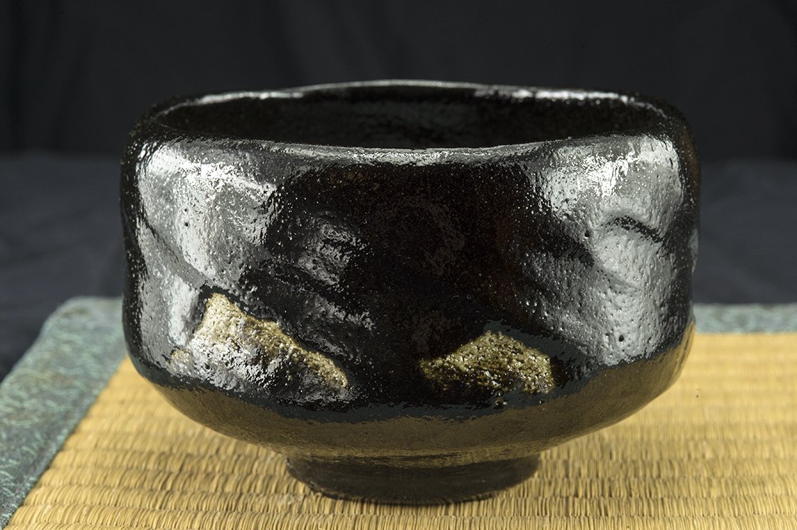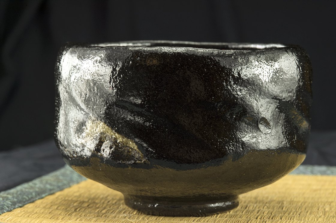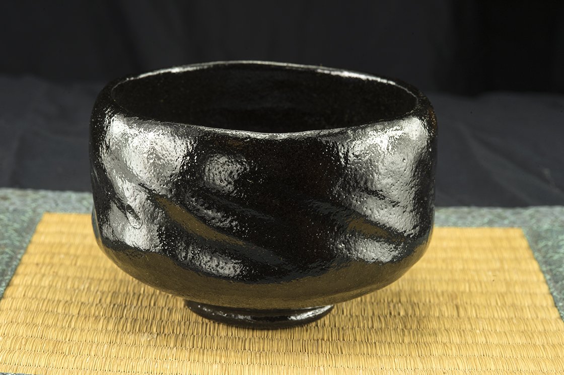 Fekete raku chawan Shoraku Sasaki kiotói műhelyéből.