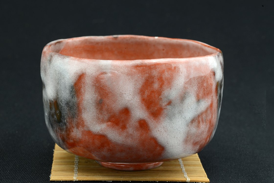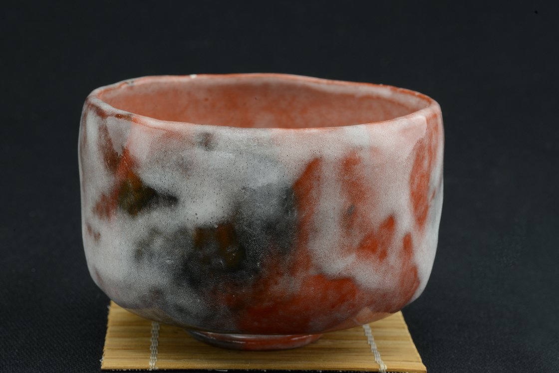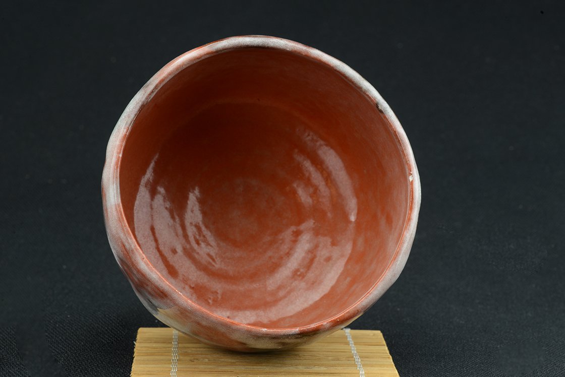 „Havas mázzal égetett gyönyörű vörös – aka raku chawan teáscsésze.