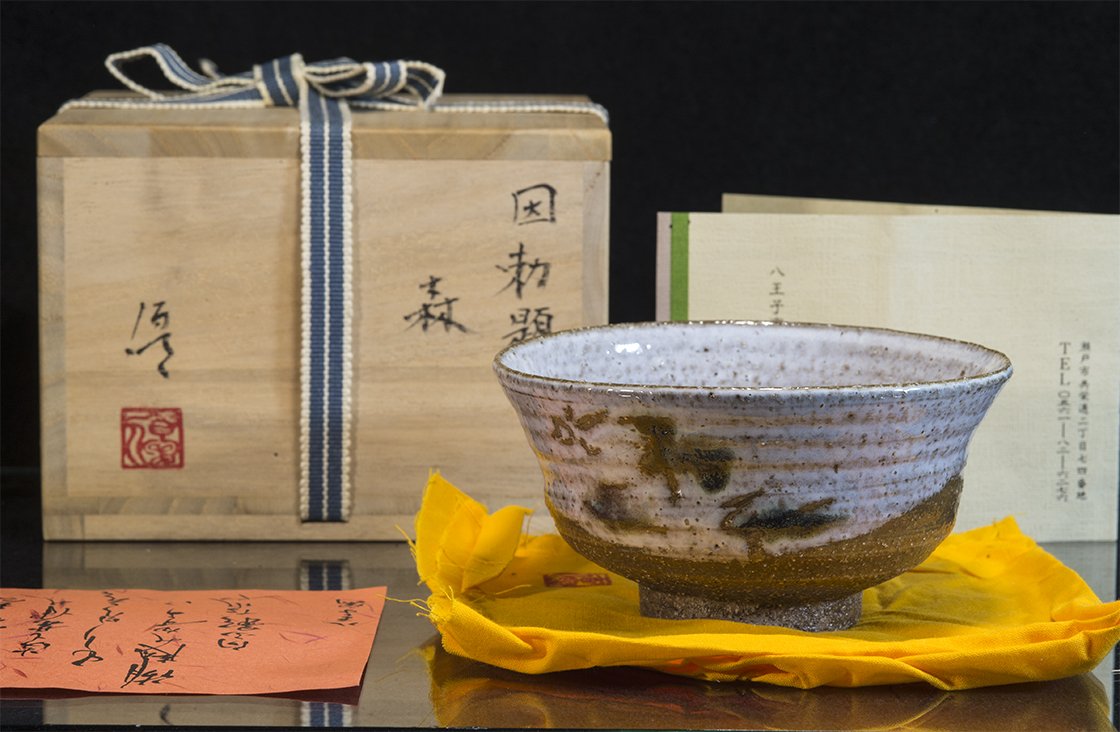 - 1 db seto chawan Yu Ito (1944 – ) a Seto kerámia nagymesterének műhelyéből, ami 12,5 cm átmérőjű, 6,5 cm magas. Jelzett fadobozban igazolással. Itot négyszer hívták meg a Nitten seregszemlére, többször díjazták is. A chawan formája a klasszikus és a nyári laposabbak között van, kényelmes.