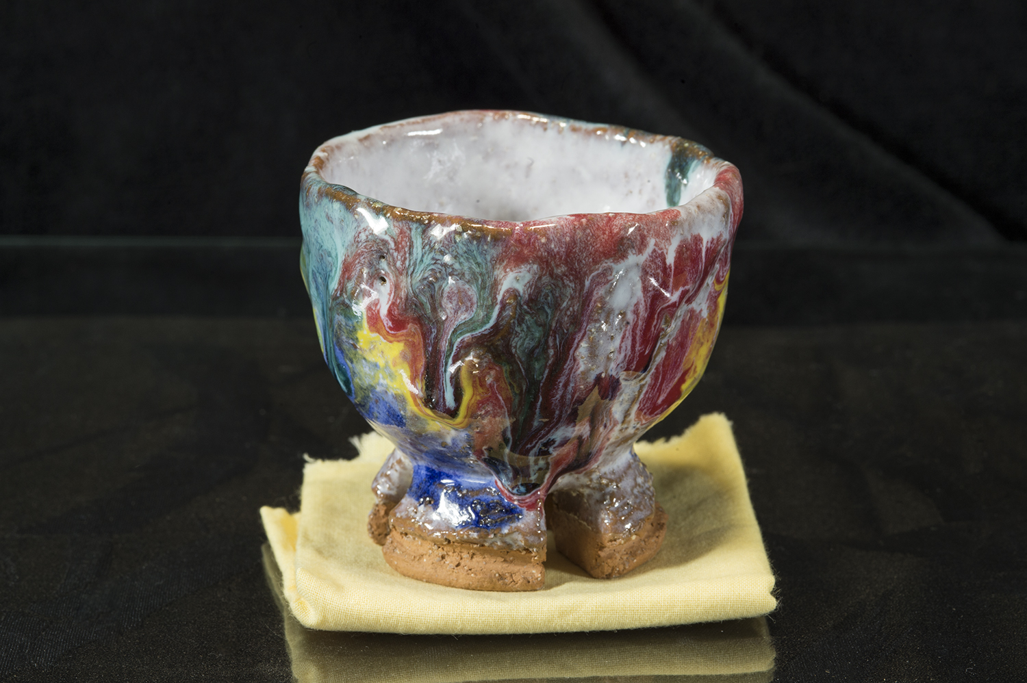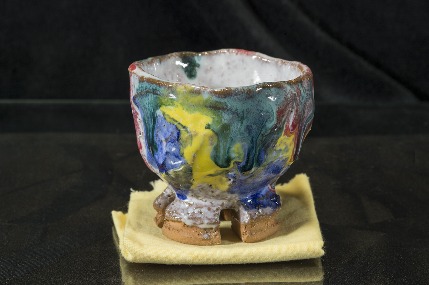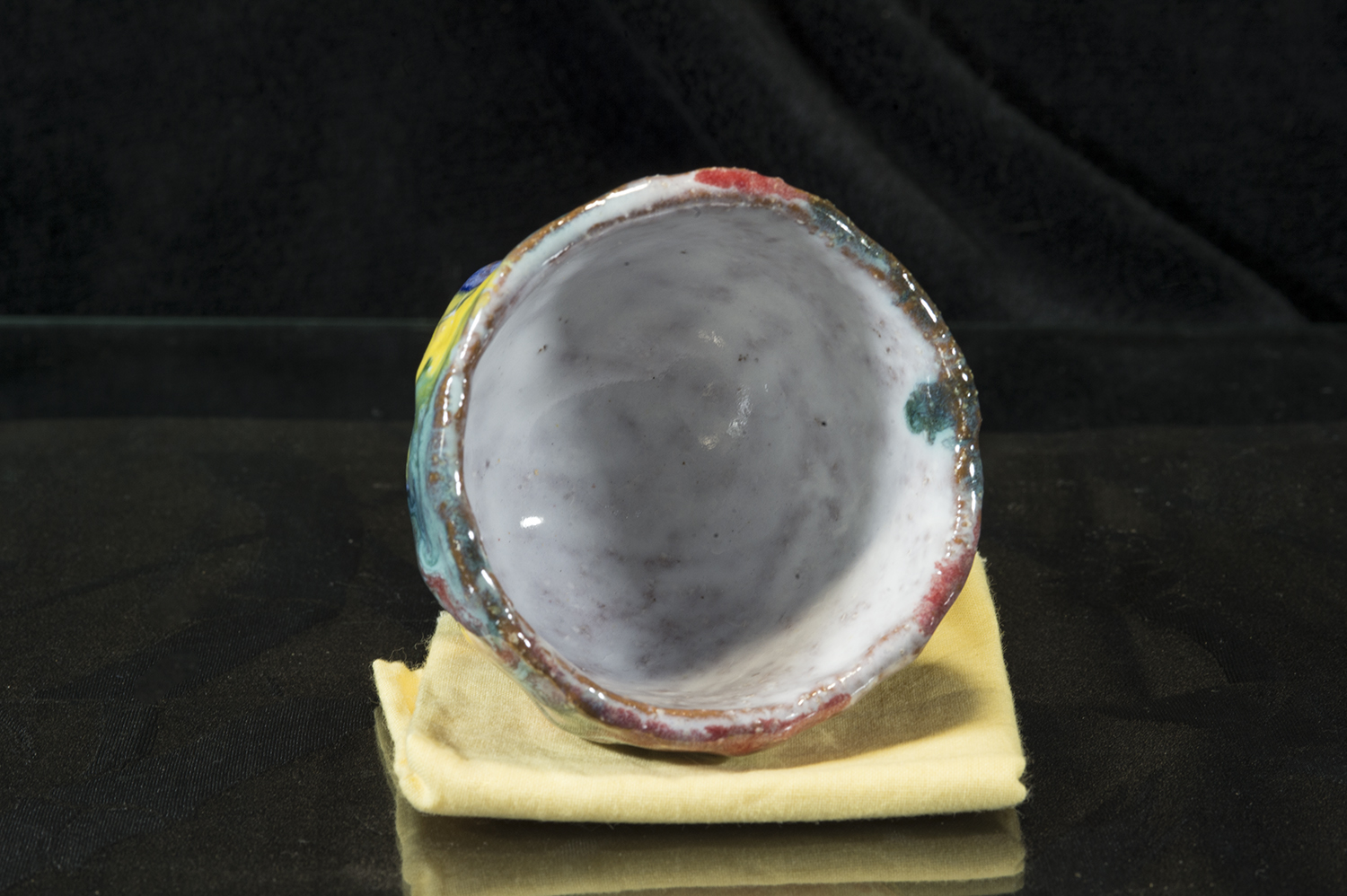 7,3 cm átmérőjű 7 cm magas teásszakés guinomi csésze Seigan színes korszakából.