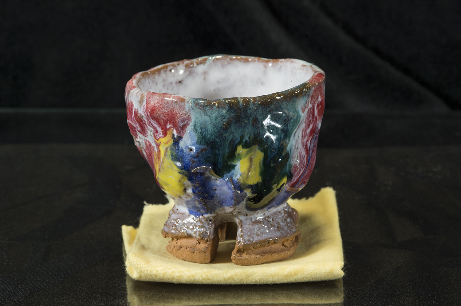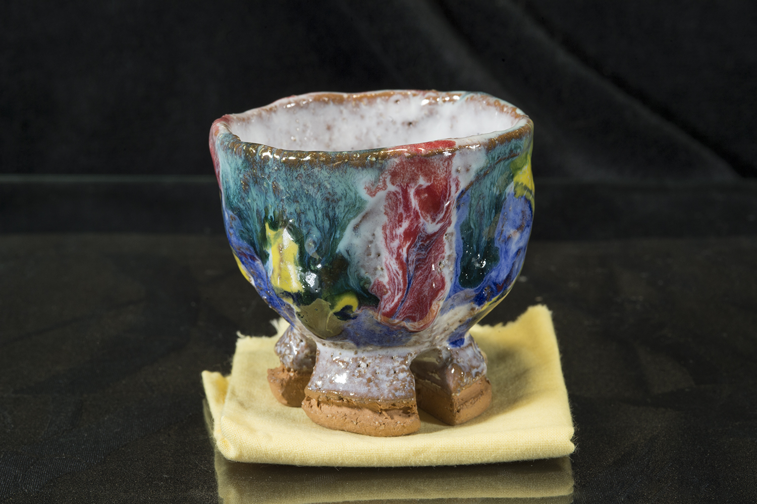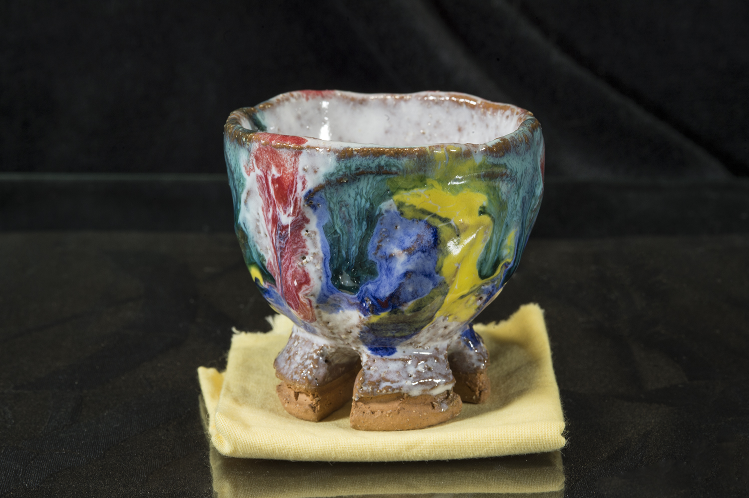 7,3 cm átmérőjű 7 cm magas teásszakés guinomi csésze Seigan színes korszakából.